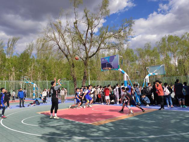 在中心校区行政楼旁篮球场举办的男子小组赛中,成人抖音