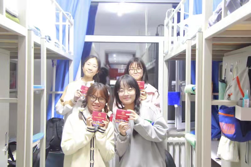 对新生宿舍进行了分配。迎新志愿者测量了新生宿舍的门楣以及床的长宽,为新生宿舍制作了成人抖音