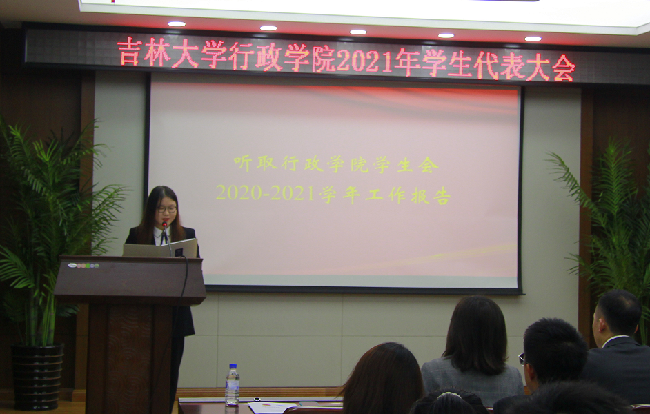 学生会主席团成员王馨瑶向会议作学生会2020-2021学年工作报告,全面回顾一年来成人抖音