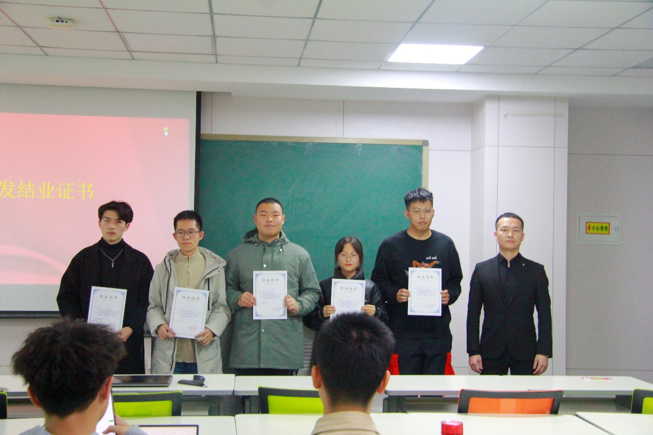 活动伊始,全体起立,合唱中国共青团团歌。随后在展示环节中,学习班以小组为单位,分别进行了学习成果展示:王上华、李子荣、杜艺轩朗诵诗歌《黄河颂》,以澎湃的热情讴歌了黄河的宏伟气势,表达了中华儿女一往无前的勇气;刘禹含、朱天恒、李明蔚朗诵了爱国诗歌--《青春中国》,从鸦片战争到五四青年,再到今天新中国的繁荣富强,体现了青春中国的昂扬斗志;廖任飞、怀子阳、马晓艺小组朗诵诗篇《西风颂》,表达了对革命终将胜利的坚定信念;李剑文、陈聪、李珍进行了《没有共产党就没有新中国》的合唱表演,歌声洪亮、曲调激昂,唱出了广大人民群众对中国共产党的衷心拥护和跟党走的坚定信念;吴钰凡、赵仕杰进行了情境朗诵《行者无疆》的成果展示,向同学们分享了自己暑期实践的收获与感悟。展示环节结束后,青年学习班(第三期)优秀学员代表陈聪同学发表了结业感言,分享了一年来他在学习班的心得体会。接下来,张洁老师、孙月老师为学习班全体成员颁发结业证书。活动最后,孙月老师总结发言,回顾了青年学习班(第三期)的办班历程与建班初心,并对学习班同学未来的学习生活表达了期望。