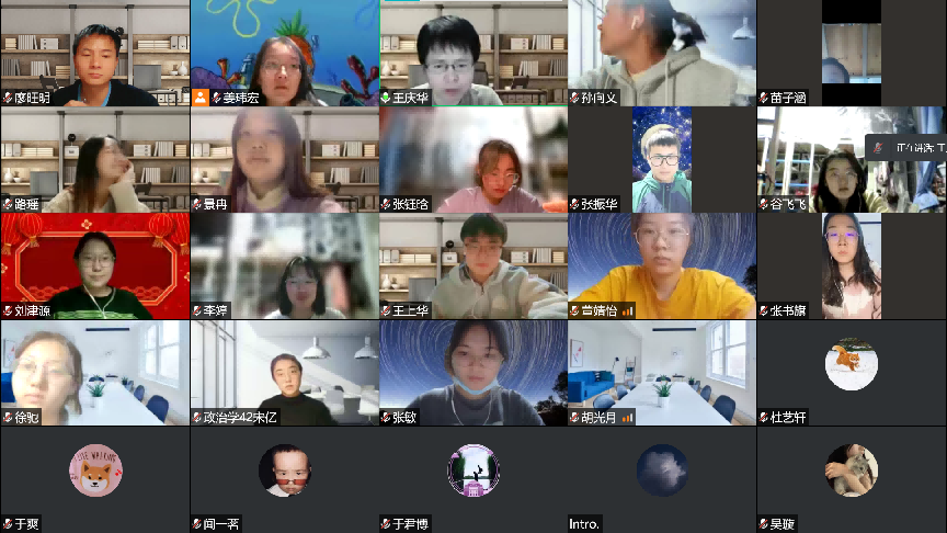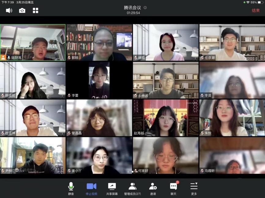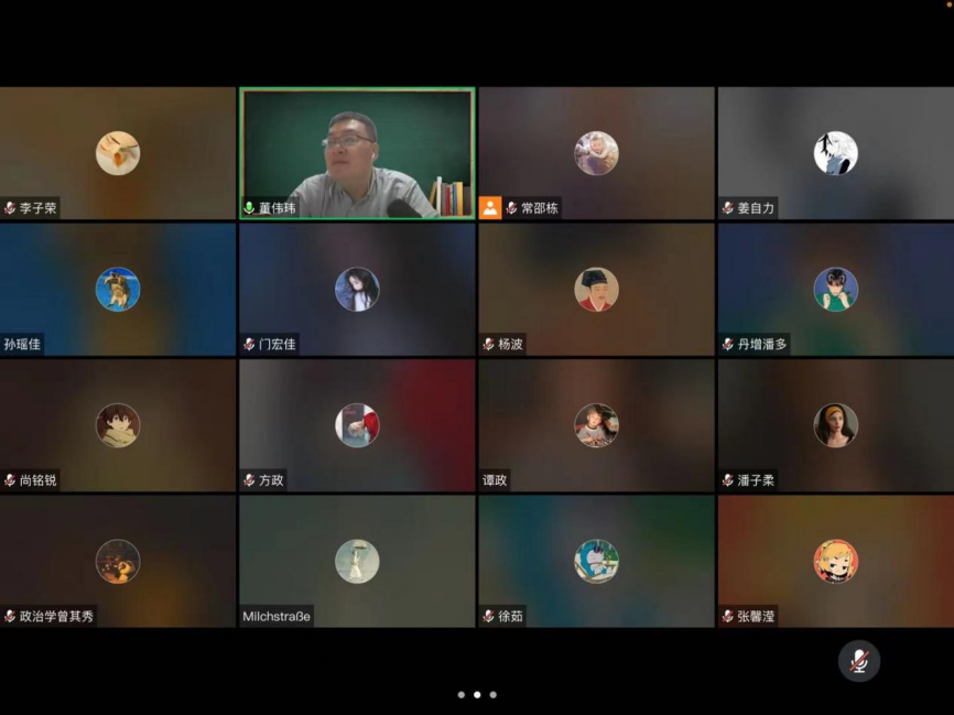3月25日晚上,在2020级五班的班会上,班主任王庆华老师和于君博老师通过视频会议与同学们见面。王庆华老师询问了同学们生活起居与饮食方面的情况,令同学们倍感温暖。随后,两位老师向大家介绍了英屹计划征文活动,勉励同学们利用好封寝时间,以专业视角关注现实问题,在深度思考的过程中提升学术能力。在自由交流环节中,张振华同学结合自身经历,分享了如何把生活中的磨难当作一种独特的生命体验。景冉同学询问老师如何处理繁忙的工作与旅行休息之间的矛盾。于君博老师针对这两位同学的发言进行了回应,他通过回忆自己学生时代在北京经历“非典”疫情时的生活,启示大家要正确看待并积极提升生命体验,并分享了自己在工作瓶颈期时穷游欧洲的经历。
