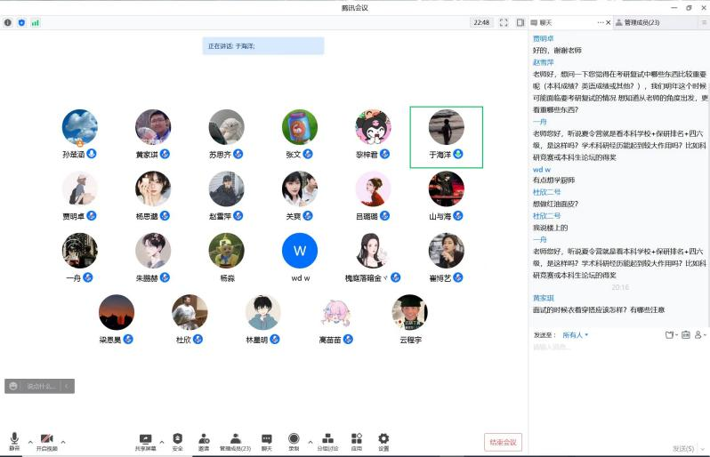 外的疫情发展态势并提醒同学们要时刻对防疫保持高度重视。两位老师也都对于同学们的学习生活表示高度关切,并就同学们提出的有关保研、考研、就业等问题耐心解答。