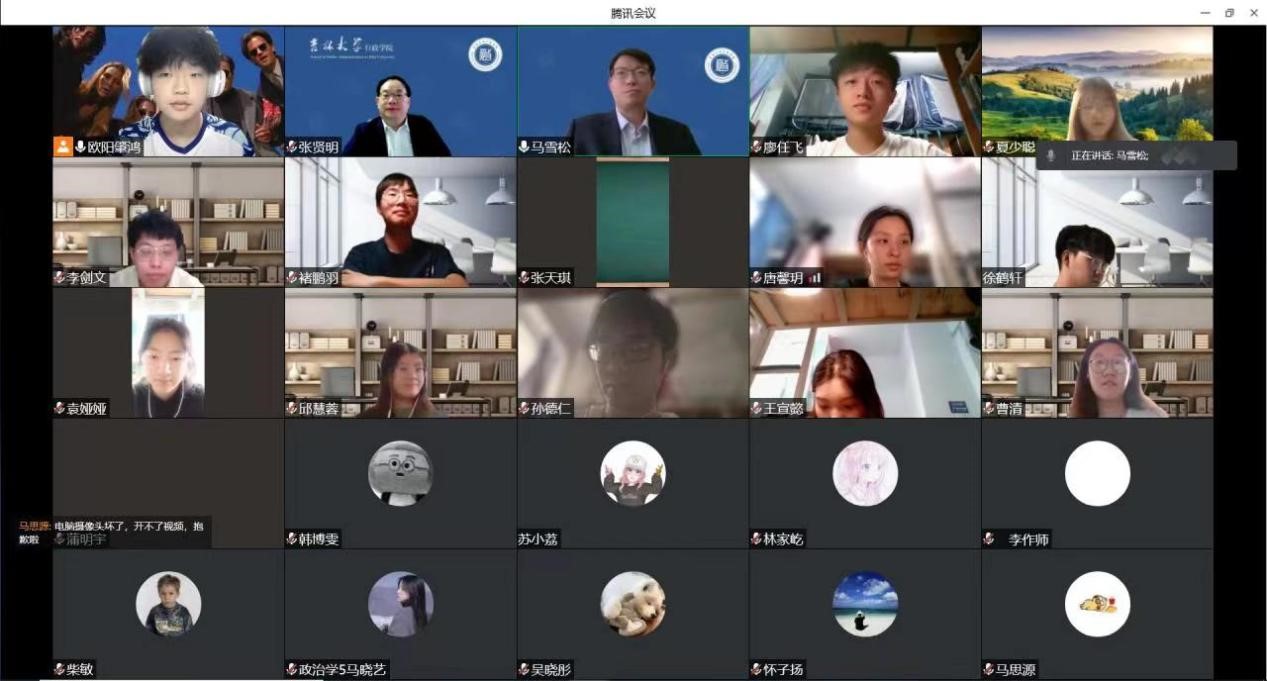 在疫情期间扛住巨大的经济压力为同学们供饭,有些同学在此期间运用自己的专业知识反思疫情治理是否还可以再加以优化,有些同学期待着解除封校后还可以出门看看春色佳景。最后,郭锐老师分享了自己在疫情期间居家隔离的生活,他认为同学们可以利用此机会多多阅读专业文献,增长自己的见识。此外,老师提出有的同学在线上课的积极性不高的问题,希望大家在线上教学的时候可以打起精神气,防止懈怠。
