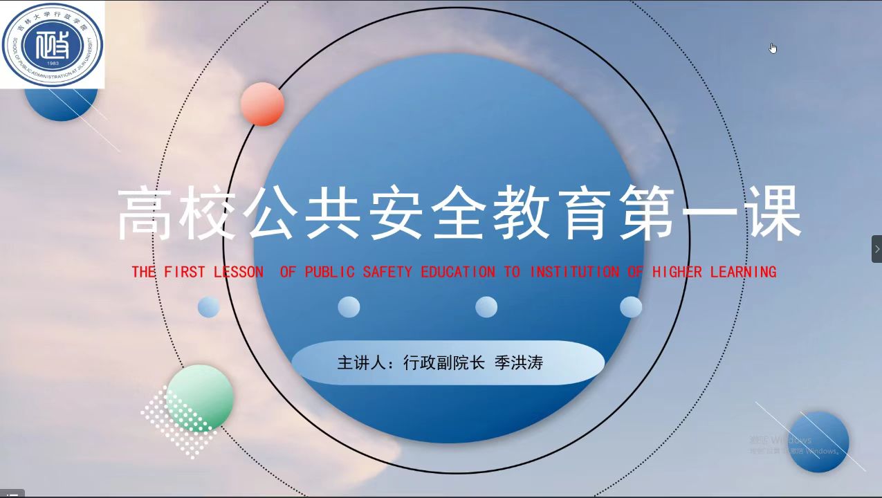 博士研究生李湘飞同学扑救校园火情的先进事例为切入点,详尽分析了影响高校公共安全的内外部因素,讲解了高校公共安全问题的类型化处理方法,同时通过政策解读和案例分享,提醒各位新生同学,要时刻警惕身边潜在的风险隐患,提高辨识与消除安全隐患的能力。