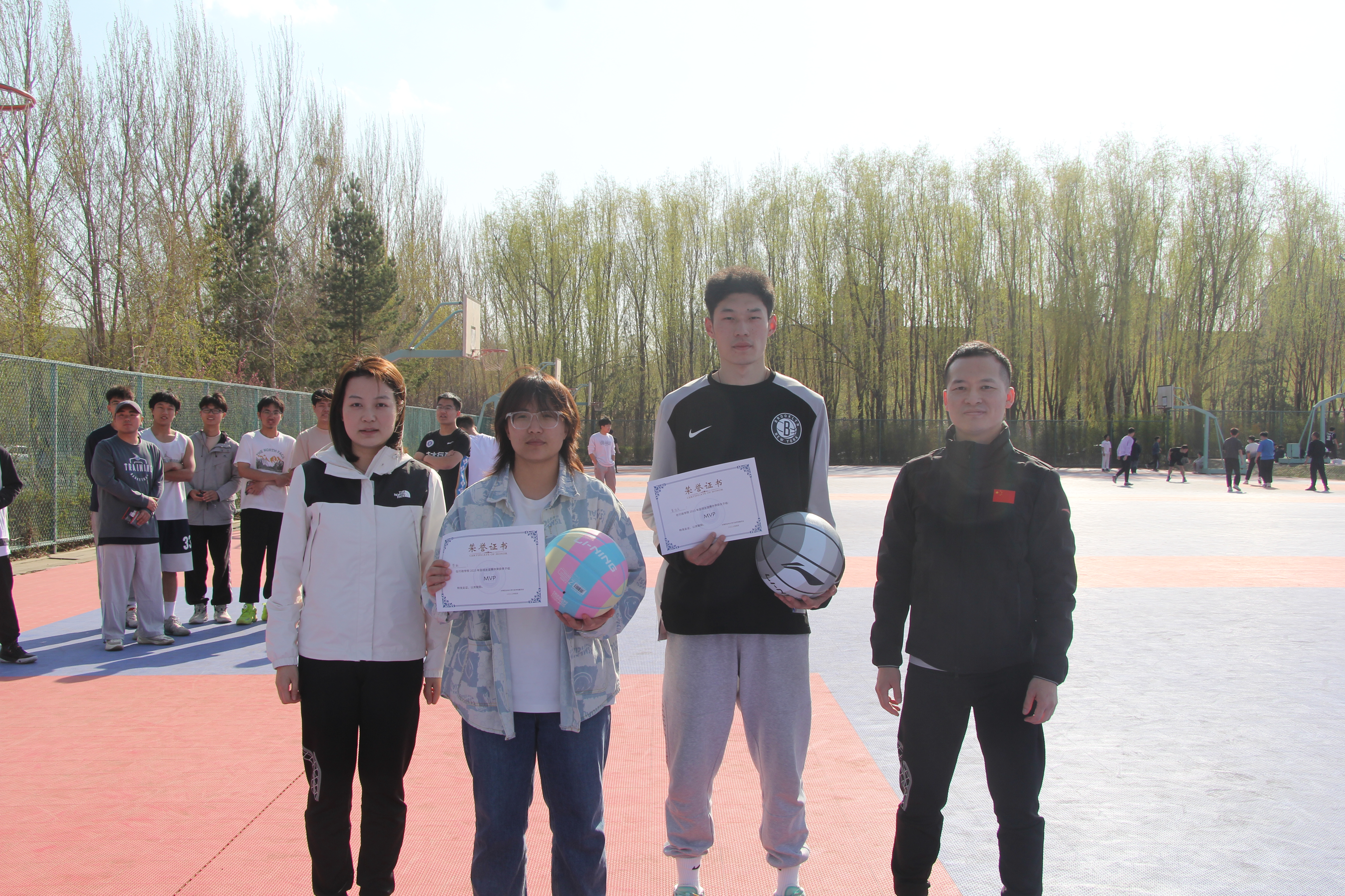 在女子组的比赛中,同学们秉持友谊第一、比赛第二的原则,在火热的氛围中展开比赛。最终2020级代表队取得冠军、2021级代表队位列第二,2020级代表队队员柴敏(2020级本科生)获得女子组最佳个人。比赛结束后,李毅主任、张洁书记和高卓嫱老师为获奖队伍和个人颁奖并合影留念。