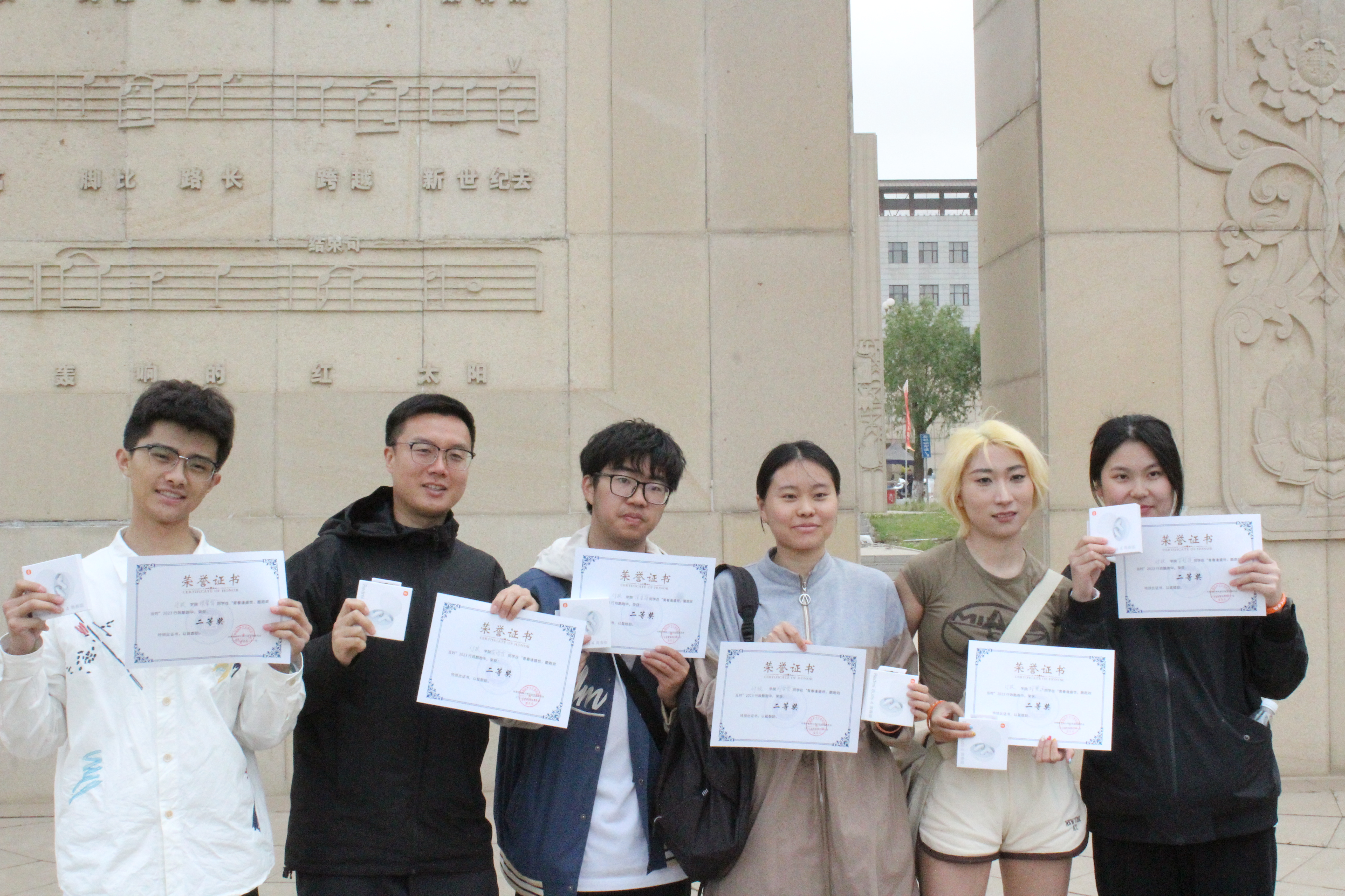 学生会张航(2020级本科生)为获奖选手颁发奖状及奖品并合影留念。