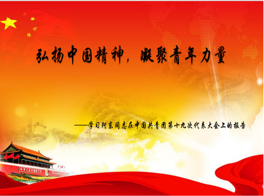 第一环节,材料学习。活动伊始,各班团支书带领同学们一起阅读学习了阿东同志在中国共青团第十九次代表大会上的报告中的主要内容,参会团员都深刻地领会到团十九大报告的深刻内涵,认真思考了当代青年要如何做时代新人、接续奋斗使命等问题。党中央对青年工作和青年成长的高度重视温润着团员青年的灵魂,党中央对新时代中国青年寄予殷切希望、提出成长成才要求,极大地鼓舞和振奋了全国广大青年和青年工作者。