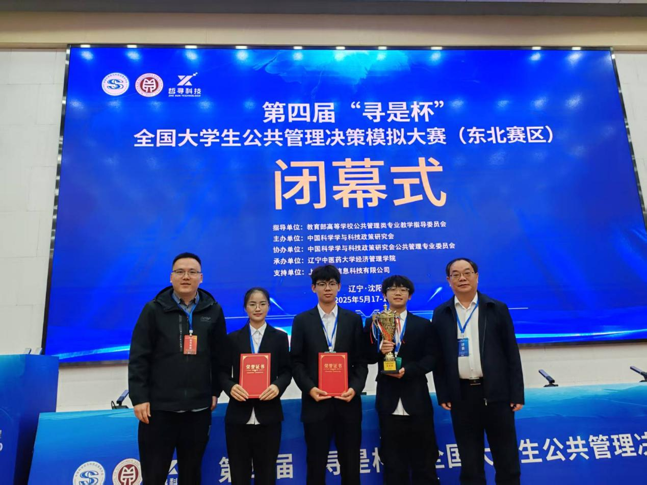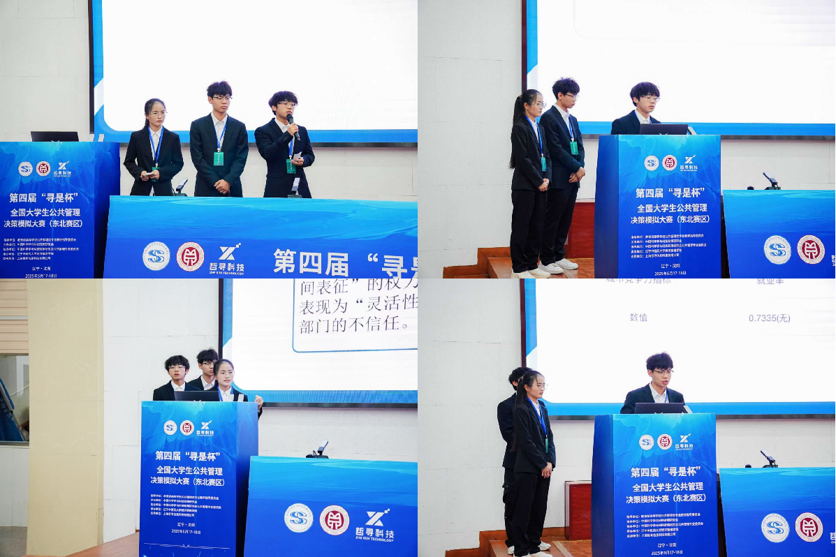 方案设计比赛于4月30日至5月9日在线上开展,小队成员精心完成方案设计,取得优异成绩;5月17日,来自各院校共26支参赛队伍进行了为期6个小时的公共管理决策演练沙盘对抗竞赛,“启承队”以小组第一名的成绩入围决赛答辩阶段;5月18日上午,大赛进入现场答辩赛环节,“启承队”以“地摊经济:烟火气与城市治理的平衡”为主题,结合实际生活总结沙盘模拟中出现的公共管理问题,以空间生产理论的“三元辩证法”为分析框架,深入分析地摊经济发展的痛点以及如何实现“文明城市建设”与“烟火城市建设”的平衡,机敏应答专家评委提问,最终获得第四届“寻是杯”东北赛区公共管理决策对抗大赛特等奖、最佳团队奖,获得直通全国总决赛的资格。