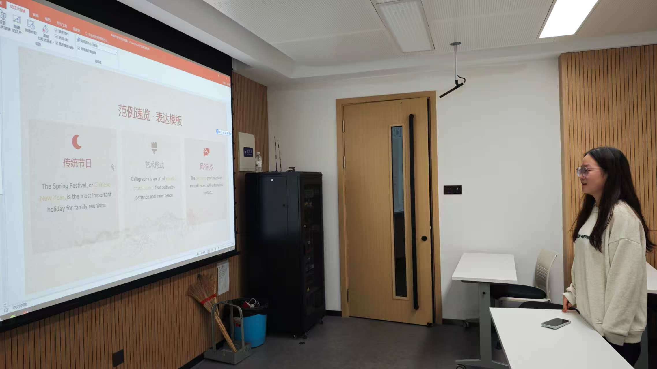 活动现场,在主持人流畅的英语引导下,同学们首先共同学习了用英语介绍中华文化元素的范例,从七夕的传统节日氛围到书法的韵味,构建了清晰的表达框架。随后的分组讨论环节将气氛推向高潮,同学们围绕自己感兴趣的文化话题,如“中西方节日差异”、“中国美食的哲学”等,进行了的英语交流。大家踊跃发言,尝试用英语讲述中国故事,不仅在实战中锻炼了口语表达与逻辑思维,更在交流中深化了对本土文化的理解与认同。