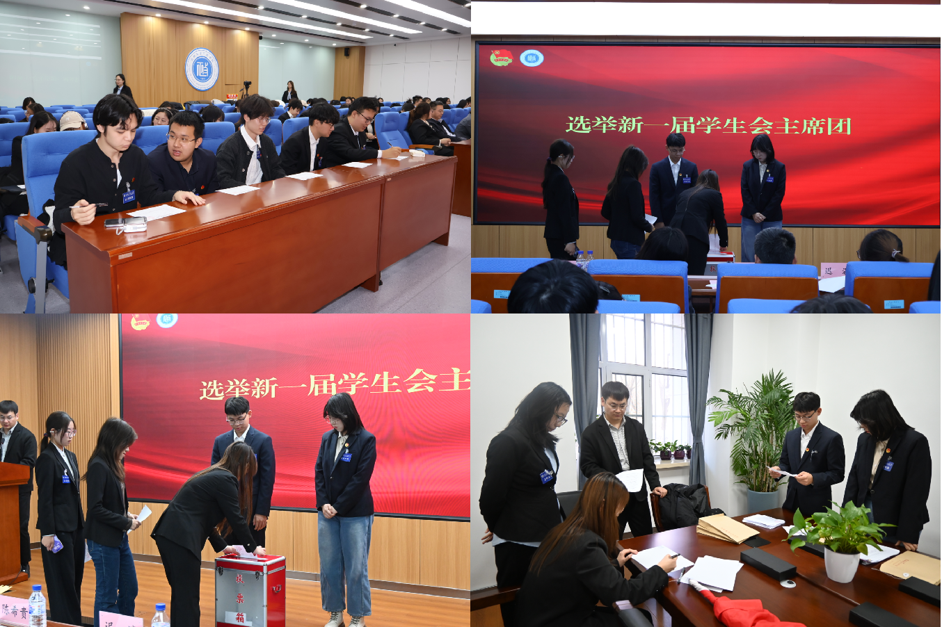 学生会2025年度工作报告。大会采取差额形式选举2023级本科生王楠、张如冰、杨晴然为新一届学生会主席团成员。