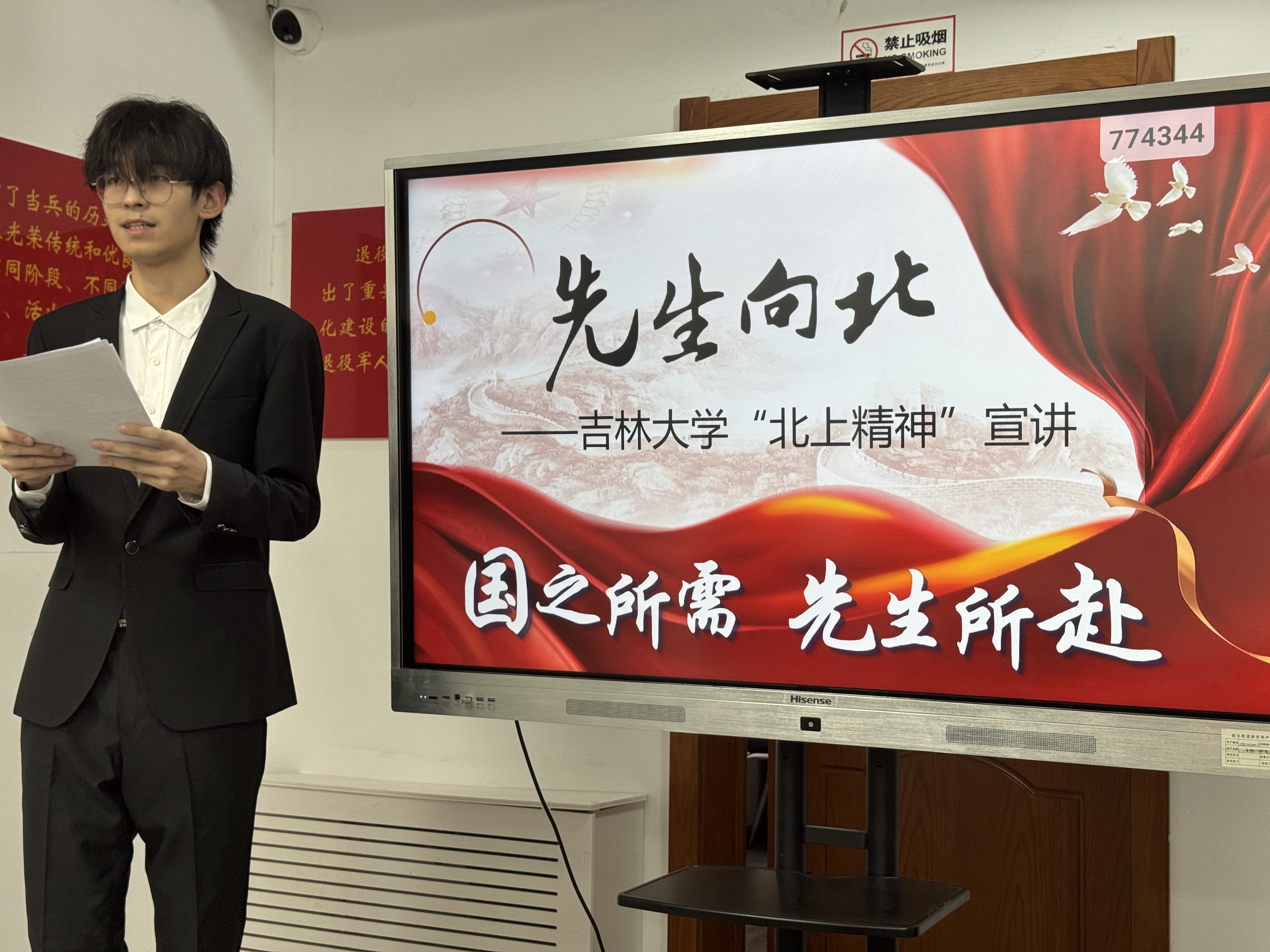 宣讲现场,宣讲团成员、2024级行政管理本科生徐赫健以《在白山黑水间赓续东北抗联精神》为题开展宣讲,系统讲述以“坚定的革命信念、高尚的爱国情操、伟大的牺牲精神”为核心的东北抗联精神,回顾东北抗联将士在极端艰苦条件下坚守阵地、奋勇抗敌的英雄史诗。同时,结合成人抖音