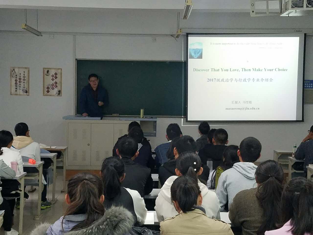 政治学系2017级本科生专业介绍会于第三教学楼211教室举办。政治学系副主任、博士生导师马雪松教授,政治学系党支部书记、硕士生导师刘畅副教授担任主讲嘉宾。2017级政治学与行政学专业本科生参加了介绍会。介绍会由院学工办主任、2017级本科生辅导员刘洋主持。