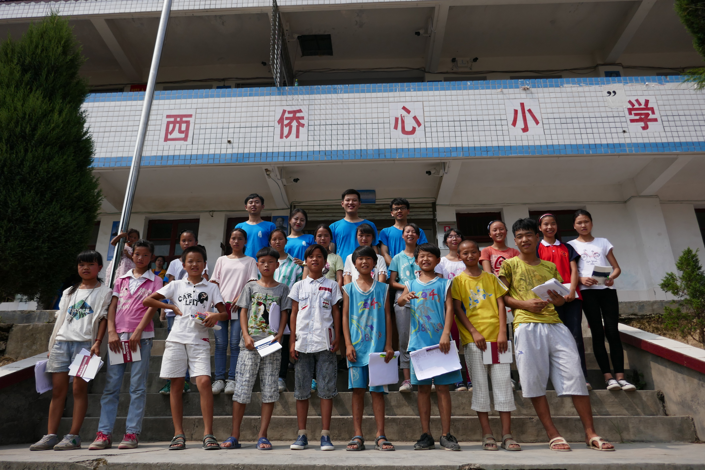 支教团的目的地——金西完小学位于贵州省铜仁市松桃苗族自治县金龙村。群山之中的校园吸吮着大山的气息,现代化的痕迹寥寥。落后的教学条件虽然引人关注,但更加触动支教团师生的是孩子们眼神里透出的单纯、好奇和勃勃生气。一个多月的细致准备为教学工作的顺利进行打下了良好基础,但是较大的年级跨度以及孩子们参差不齐的学习基础让支教团师生感到责任重大,同时也为孩子们的学习情况担心非常。他们意识到地区相对落后的现状决定了只有努力让孩子们自己把学习重视起来,才能更加进步,才能拥有更多人生的选择。