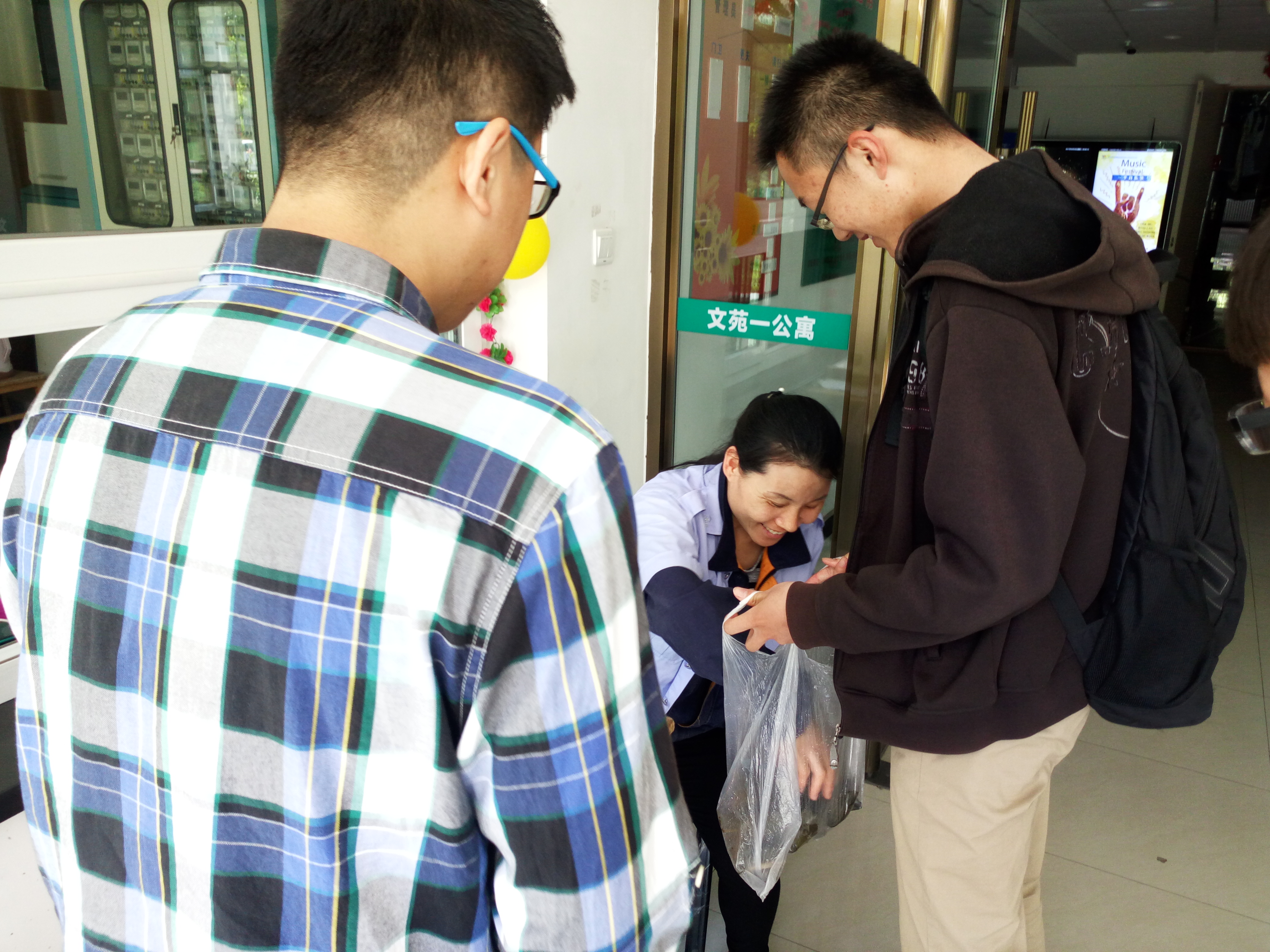 5月30日,成人抖音 政能量志愿者协会在中心校区举办了“端午节校园送温暖——关心校园幕后工作者”志愿服务活动。活动由副社长董文鼎(2015级本科生)、团支书贺子轩(2015级本科生)带队,共10名志愿者参与。