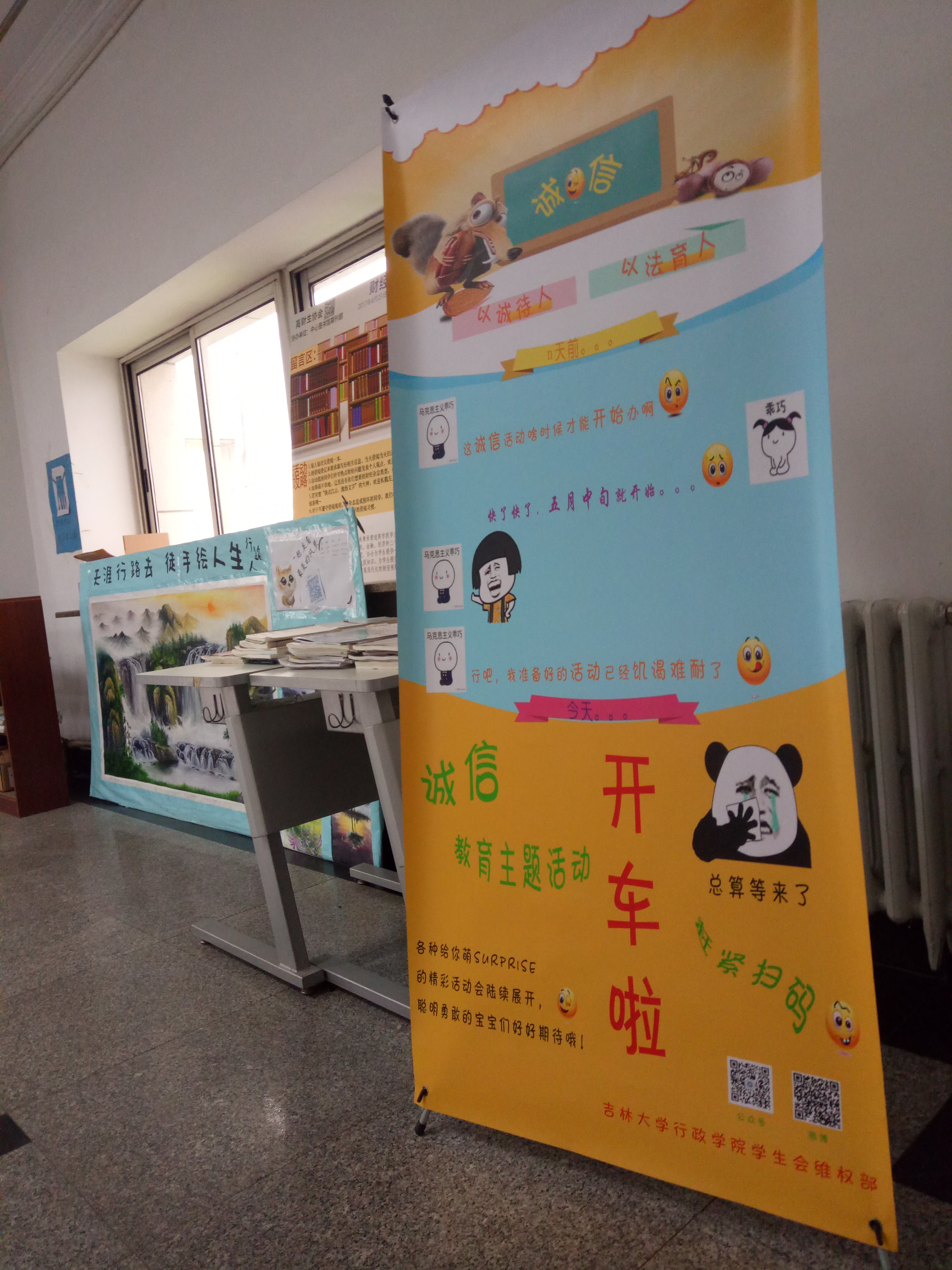 本次活动通过展示板、海报、微信推送和班内通知等形式开展。本次活动是诚信教育月系列活动的开端,这一系列活动旨在让本科生进一步审视诚信、理解诚信,营造“以诚待人、以法育人”的良好氛围。(供稿:学生会维权部 马名闻 责编:宣媒通讯员 余欣怡)