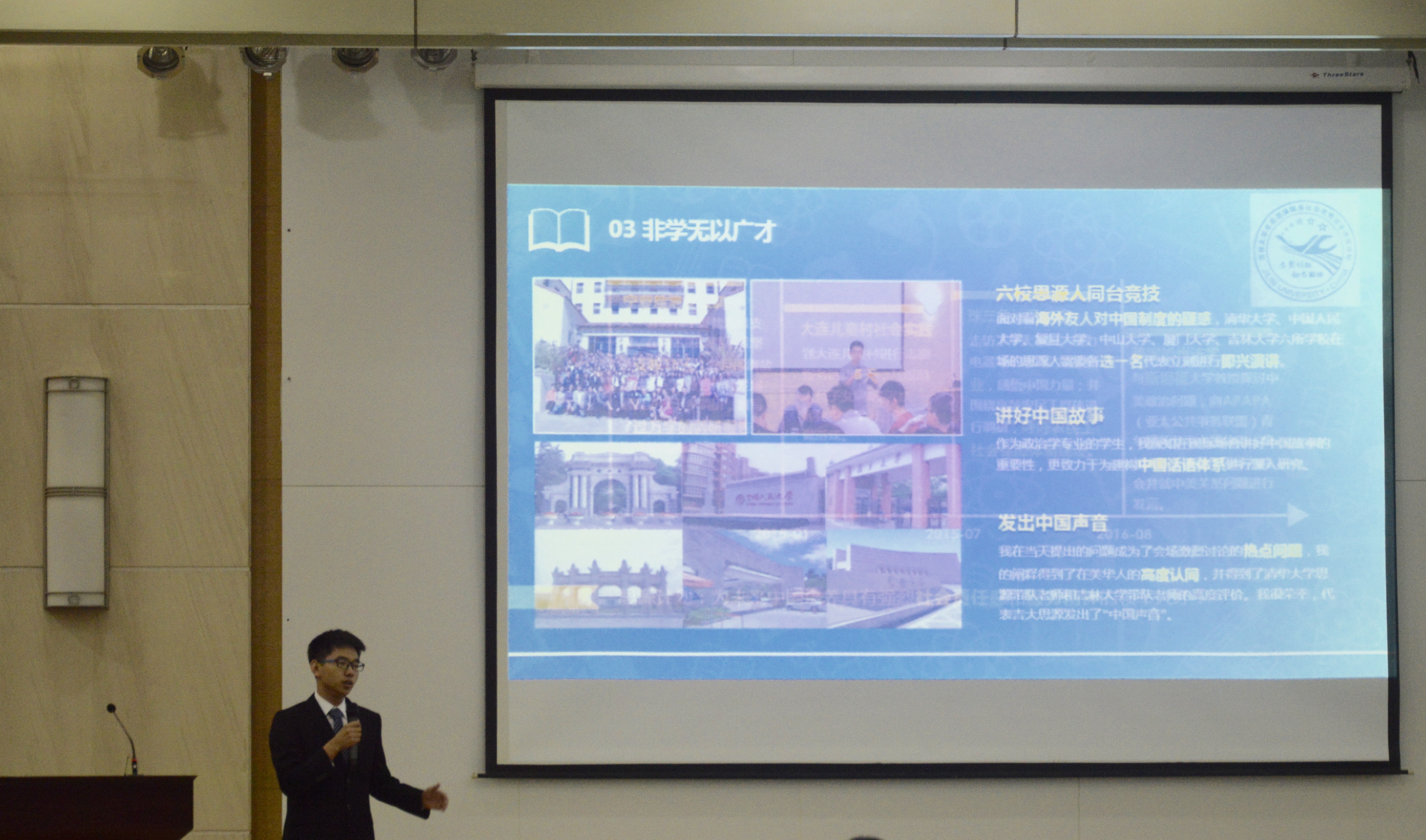 代表的是2013级本科生付锦睿。付锦睿同学大学期间成绩优异,多项成绩为全院第一;学生工作经验丰富,曾作为成人抖音