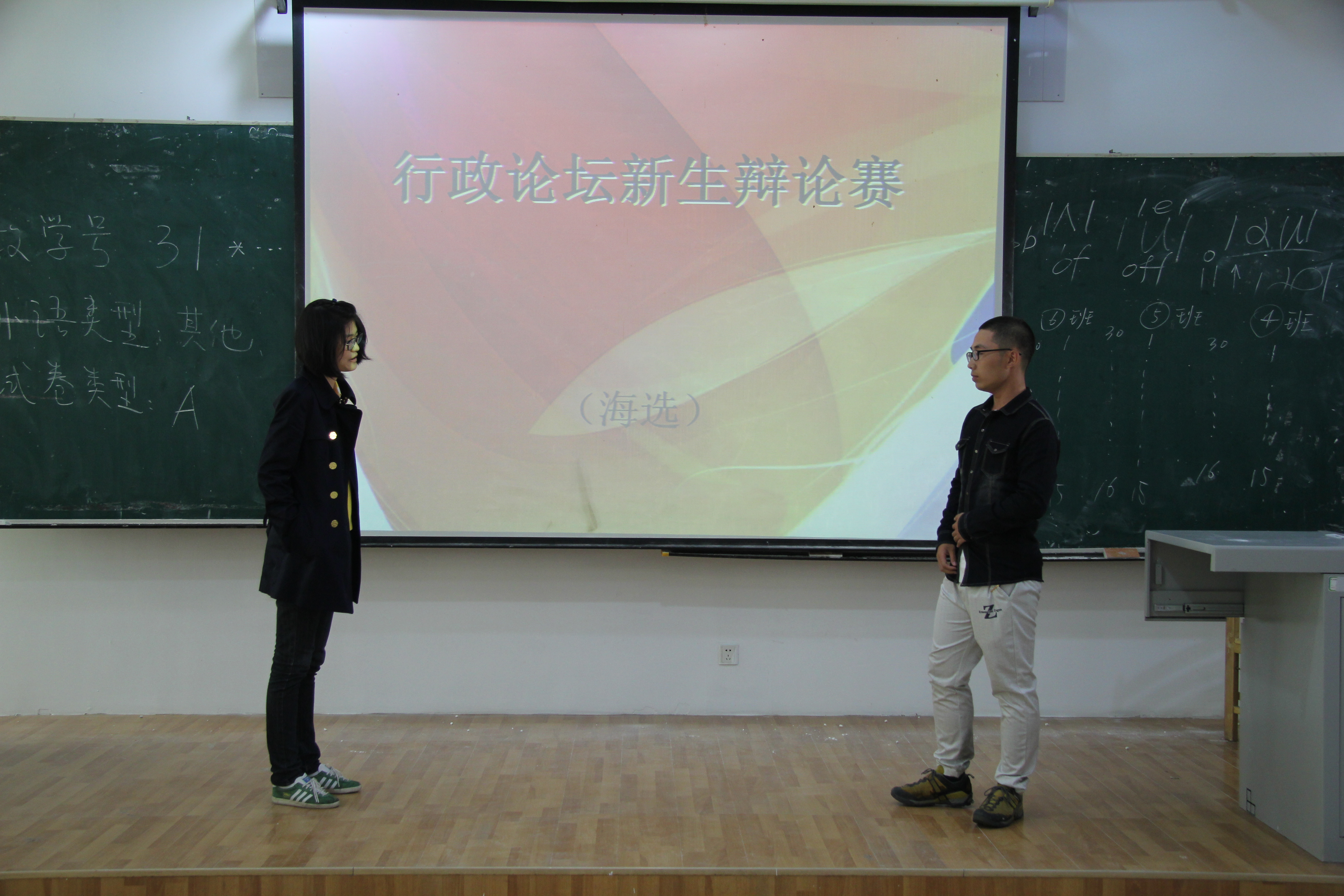 下午一时三十分,海选比赛准时开始。本次海选主要采取分组一对一辩论的形式,参加海选的同学将按报名顺序两两分组参加竞选,在到场的工作人员处抽取每组辩题并划分正反辩论方,由到场的辩论队教练进行评分和考核。每轮分为三个环节:首先双方辩手将进行简短的自我介绍,并在一分钟的时间内阐明立论与本方观点;随后选手将进入自由辩论环节,双方辩手各自拥有2分钟的时间进行提问和答辩;最后,评委则会针对两名选手在前两个环节中的表现进行随机提问。比赛开始后,李克柔首先向在座同学宣读了本次比赛的比赛规则和注意事项,并由辩论队2015级成员王帅、吴转强进行了一次表演性辩论以展示具体的比赛流程。在比赛中,参赛选手在追求青春偶像的利弊,少数民族加分政策是否应被废除等辩题上展开了激烈比拼。