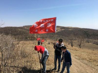 081402班联合长春市工商联药品流通行业商会于4月9日在吉林省四平市伊通县马鞍山镇马鞍山林场共同举办了“拥抱春天,播种绿色”主题植树活动。