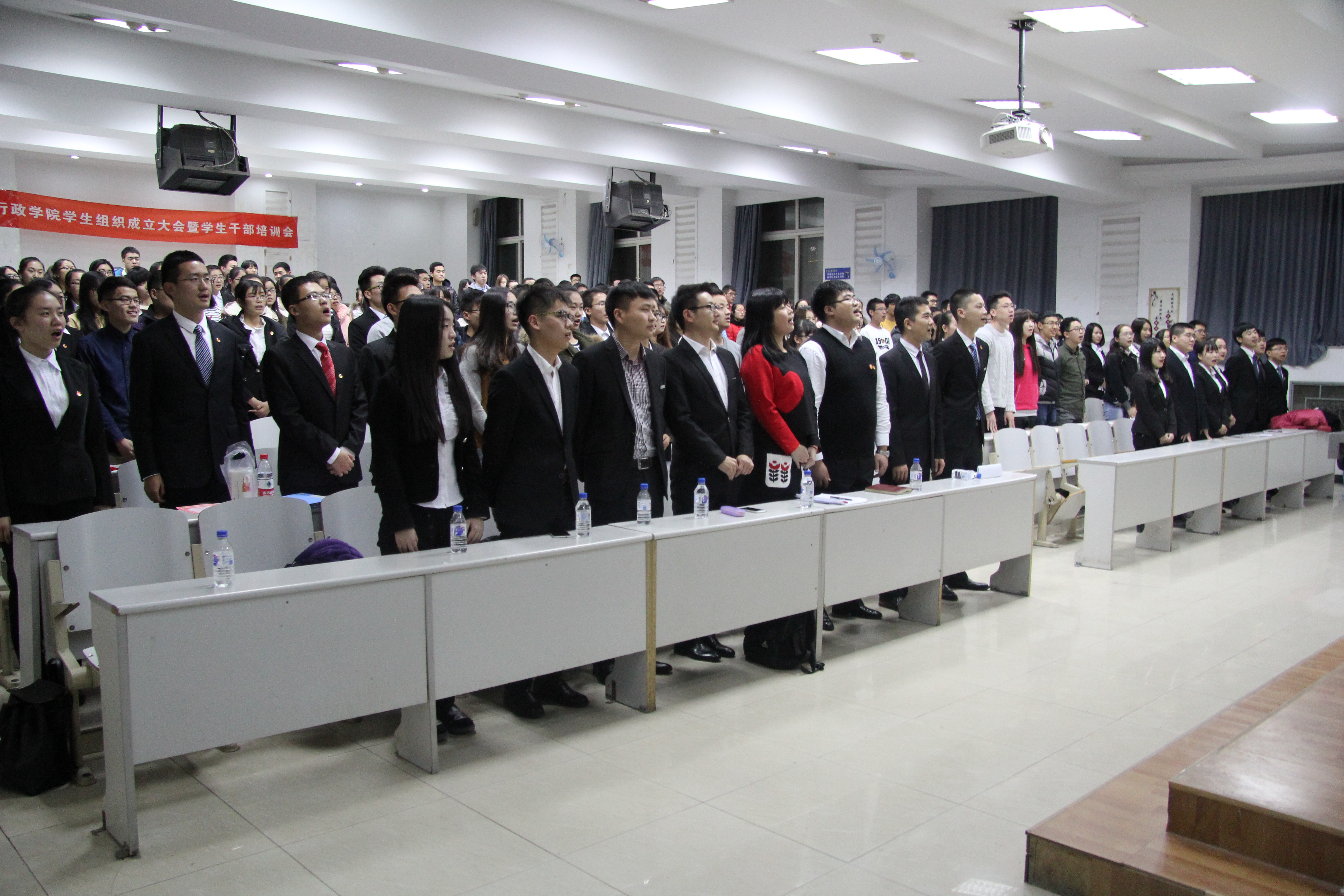 学生干部重要性和特殊性的思考,并鼓励同学们在大学期间抓住每次锻炼的机会为日后社会工作积累经验。伴随着同学们热烈的掌声,2015-2016学年学生组织成立大会暨学生干部培训会圆满结束。