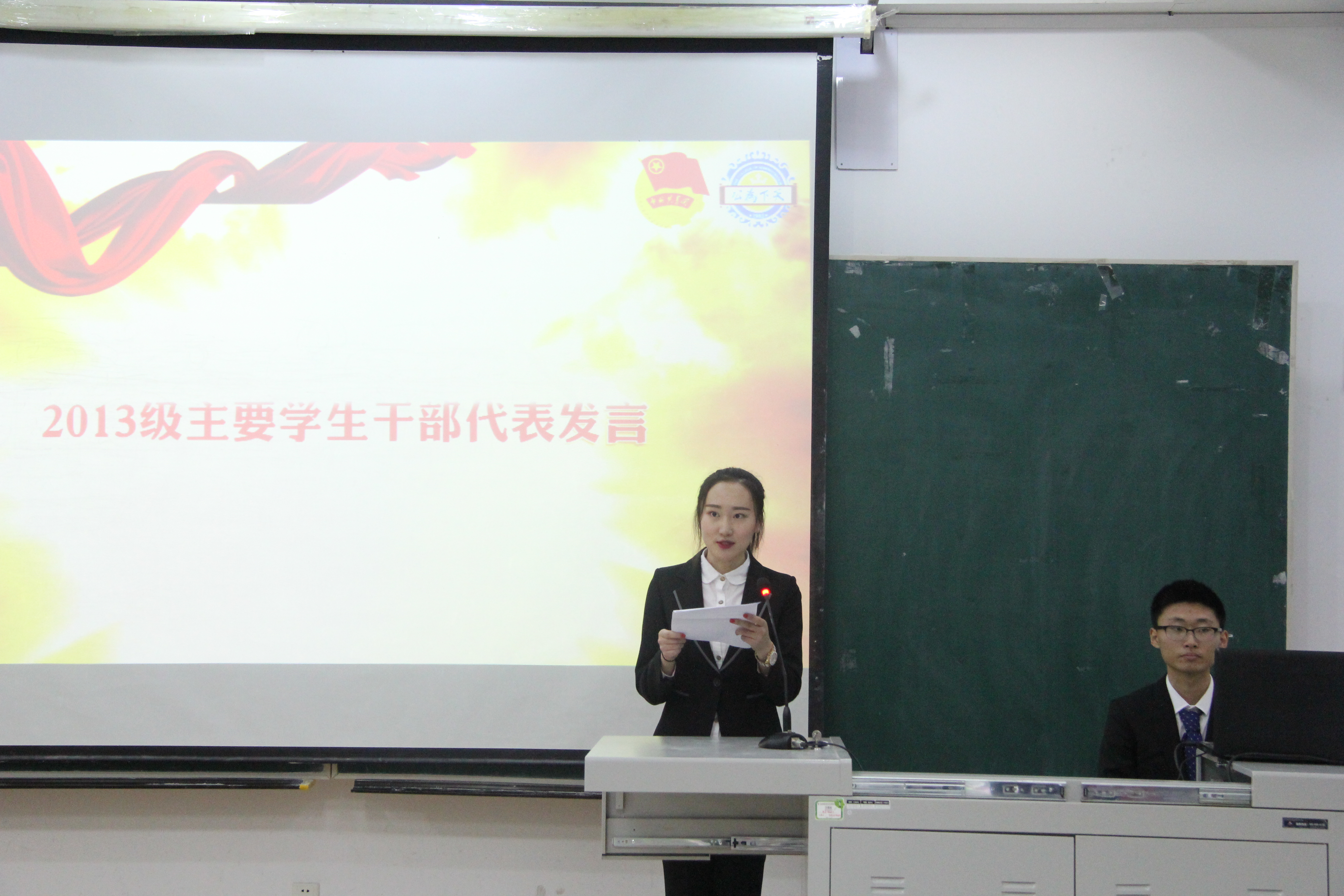 老师的培养和同学们的信任的同时,结合自身在校经历与生活,向在座同学分享了他所理解的大学生应具有的素质和使命。他提到,当代大学生必须树立责任意识与奋斗意识,在建立更高维度的统筹思维能力的同时,要把握高速发展的社会环境所提供的发展机遇,在大学生活的平台中发挥自己的才能,坚持到底、永不言弃。随后,学生会主席王雨萍(2013级)结合成人抖音