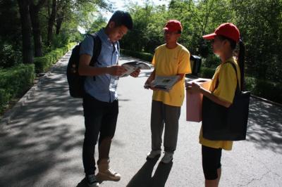 081403班同学在桂林路和南湖公园举办了义卖报纸活动。