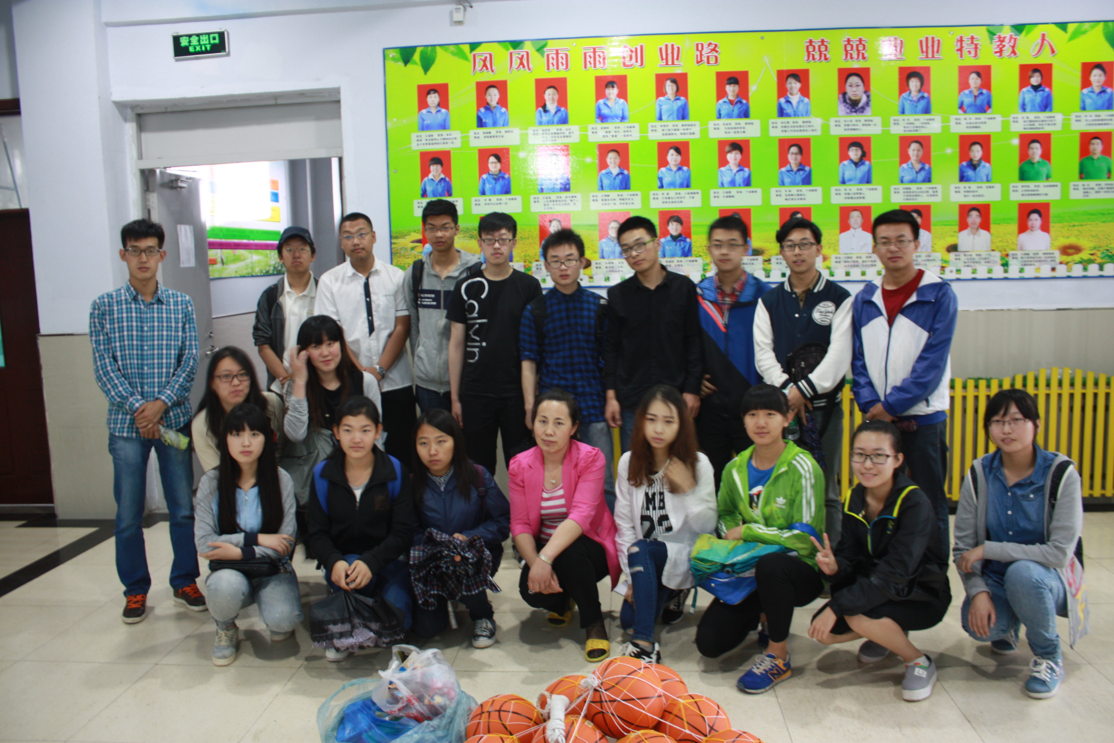081403班学生在班长张国荣的带领下来到了长春市星光特殊儿童训练养护中心,为自闭症儿童送去学习用品和体育用品。