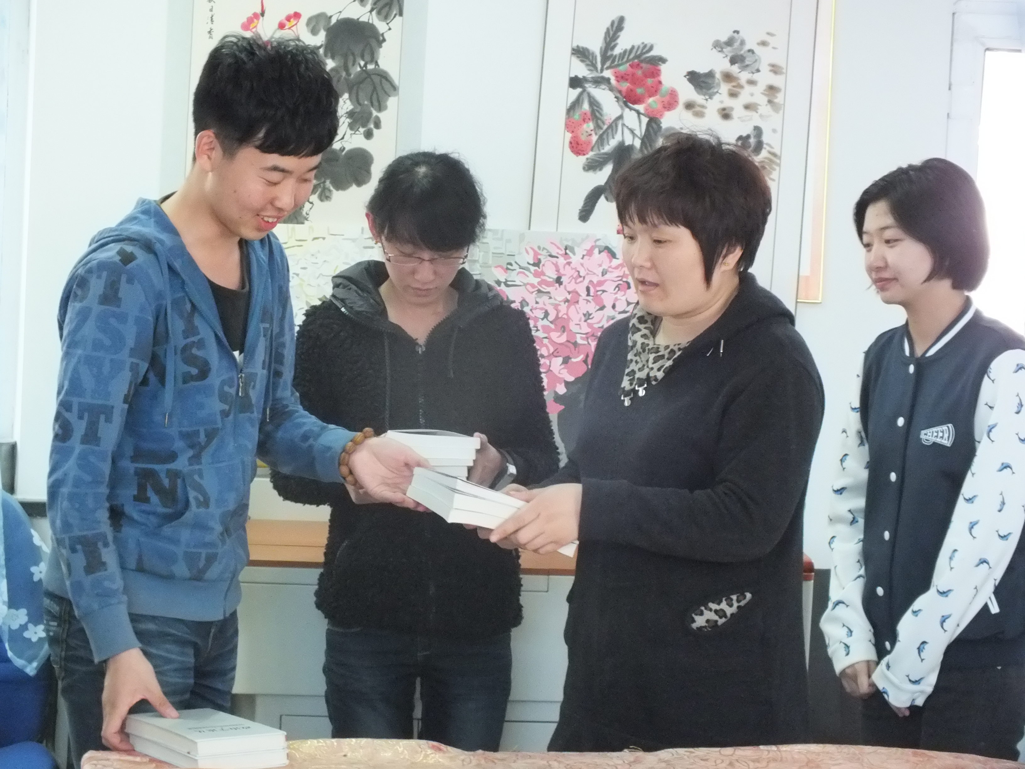 读书的主要作用是传播知识,而在社会中读书的意义将会扩展。他指出,李克强总理提出的全民阅读,强调了读书不仅可以提高国民素质,提高个人魅力与修养,更有利于社会主义核心价值观深入人心,引领社会正气。他主张读书所得要与社会实践相结合,而这也正是本次活动的宗旨。081401班班长张蕴驰也向大家推荐了一些好书并交流了读书经验。最后志愿者们向社区捐赠了由成人抖音