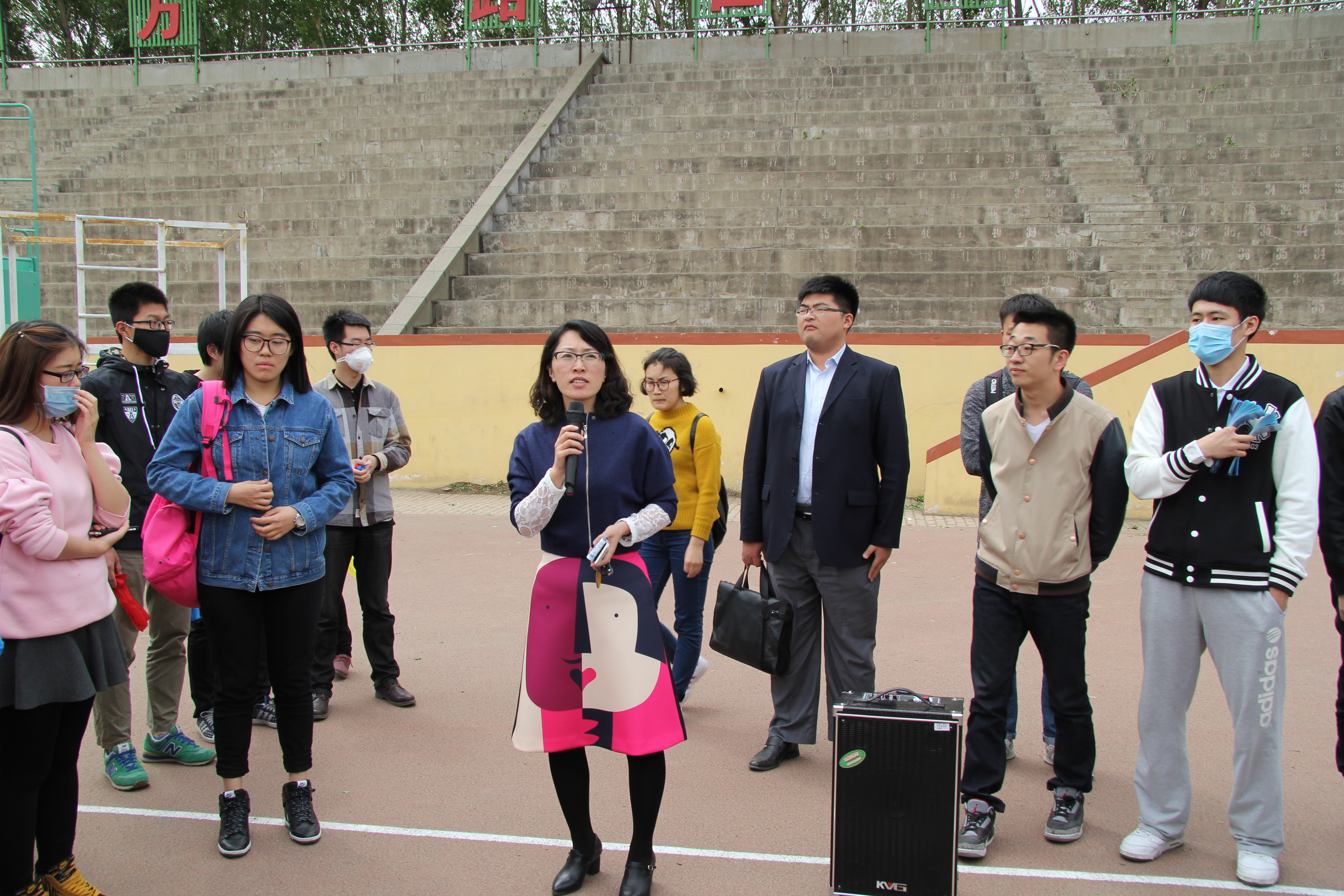 党委副书记兼副院长史慕华和本科生辅导员刘洋、曲畅竹一起来到前卫南区体育场,看望了认真训练、积极备战校运会的行政健儿们。在依次观看了各个项目的训练成果后,史慕华首先表达了对同学们不畏辛苦、坚持早晚出操训练的赞扬,对同学们在短短几周取得的训练成果表示满意。她还针对不同方队的表演提出了一些改进建议,如打太极的同学要注意在动作的转换处做到柔中带刚、长拳的同学要在细节上注意动作的规范性和保持队伍的整齐度。