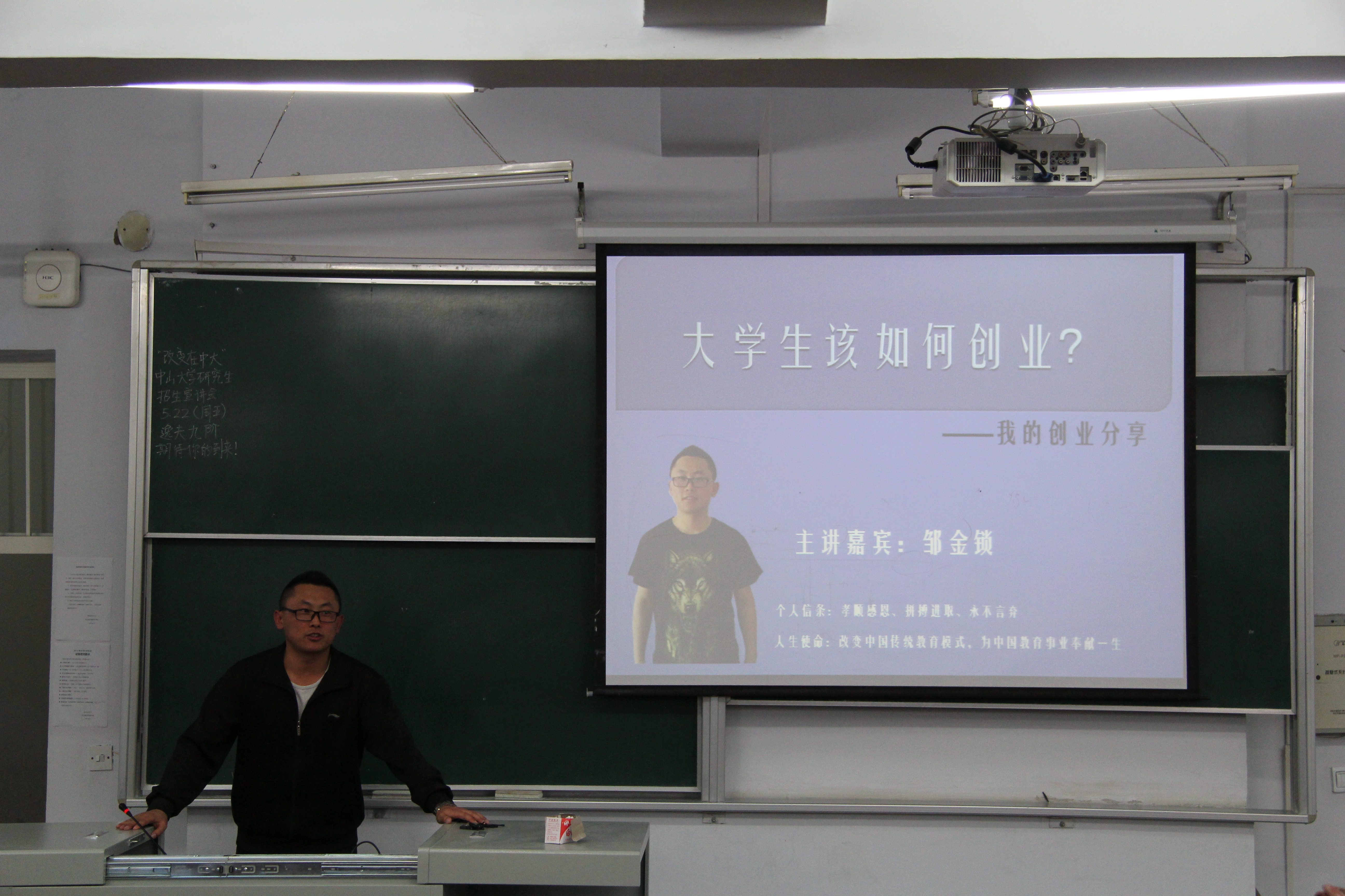 5月20日晚,在本科生就业与创业指导课上,辅导员邀请到龙腾教育培训机构校长邹金锁(成人抖音