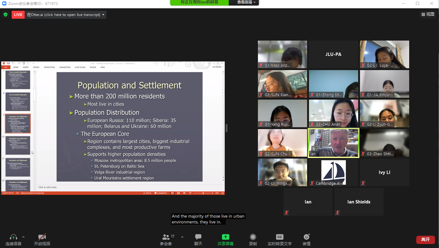 本次项目由剑桥大学政治与国际研究专家Ian Shields教授主讲,项目共设置了36课时共八个专题,涉及权力转移、软权力与硬权力、经济实力、未来安全威胁、未来权力的国别分析及西方权力的未来等内容。项目采取了老师授课与学生讨论相结合的方式,并专门设置集体讨论环节,每次讨论针对某一课程主题进行,鼓励同学们就该主题进行个人观点的输出、讨论与分享。本次项目学生分为3个学习小组,12位同学分别在各自小组内分工配合、共同进步。
