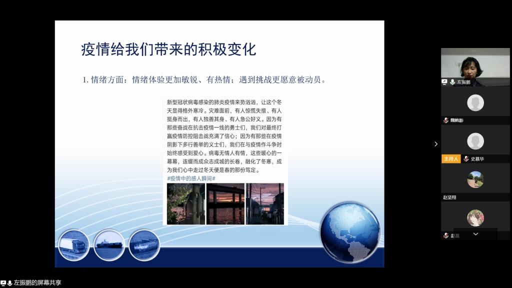 学生心理健康指导中心副主任左振鹏副教授线上授课。院党委副书记兼副院长史慕华担任主持,院党委书记魏鹤影及成人抖音