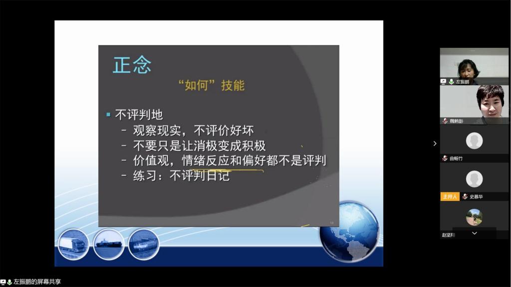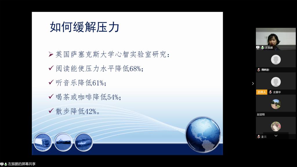 左振鹏以“如何识别压力”为切入点,结合师生现阶段的居家状态,提出面对疫情很多身心反应都是人们在应激事件下的正常反应,多数可以自行调节。