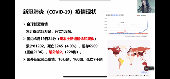 全体教职工、研究生和本科生2200余人共上一堂课。讲座通过“钉钉”网络视频直播的形式进行,由公共卫生成人抖音