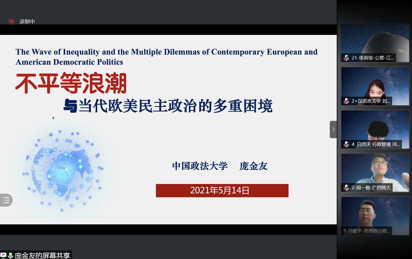 吴晓林教授为参会学生带来了精彩的学术报告会。庞教授以“不平等浪潮与当代欧美民主政治的多重困境”为主题,结合大变局时代下西方政治的新变化,深入分析了全球不平等浪潮的来源、特点、本质及影响;吴教授则以“新发展阶段的城市基层治理”为主题,通过分析当代中国特色城市基层治理案例,指明了新发展理念指导下城市基层治理的方向。线上和线下参会的同学们认真聆听,并就自己的疑惑向教授请教,两位教授进行了细致的解答,同学们收获颇丰。