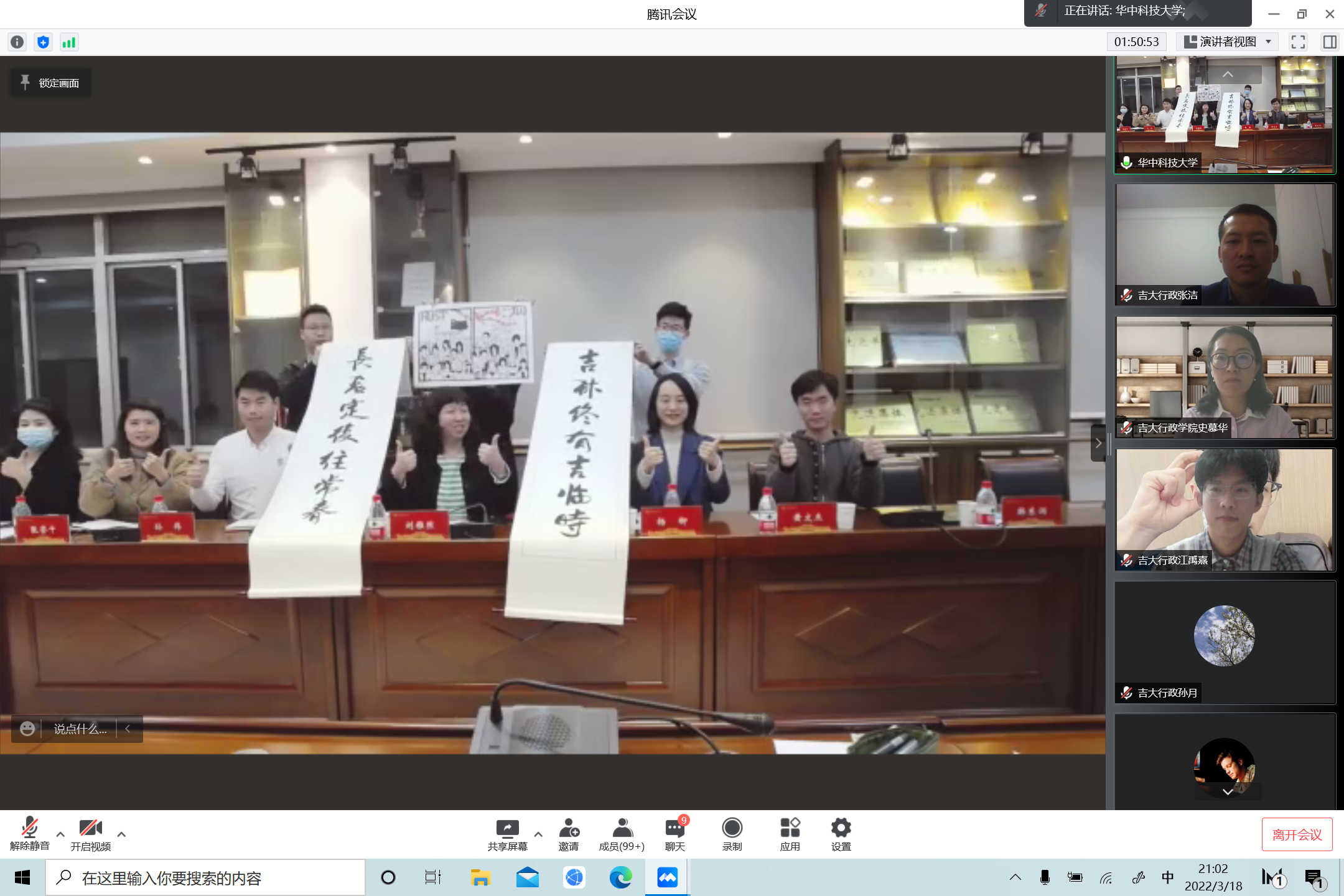 广大同学的热烈欢迎和一致好评。在华中科技大学会场,全程观摩线上会议的同学们分别即兴创作了抗疫书画作品,并赠予成人抖音