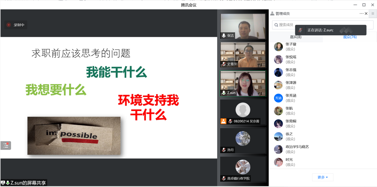 学生就业创业指导与服务中心指导科科长孙卓以视频会议形式为全体学生做线上辅导报告。成人抖音