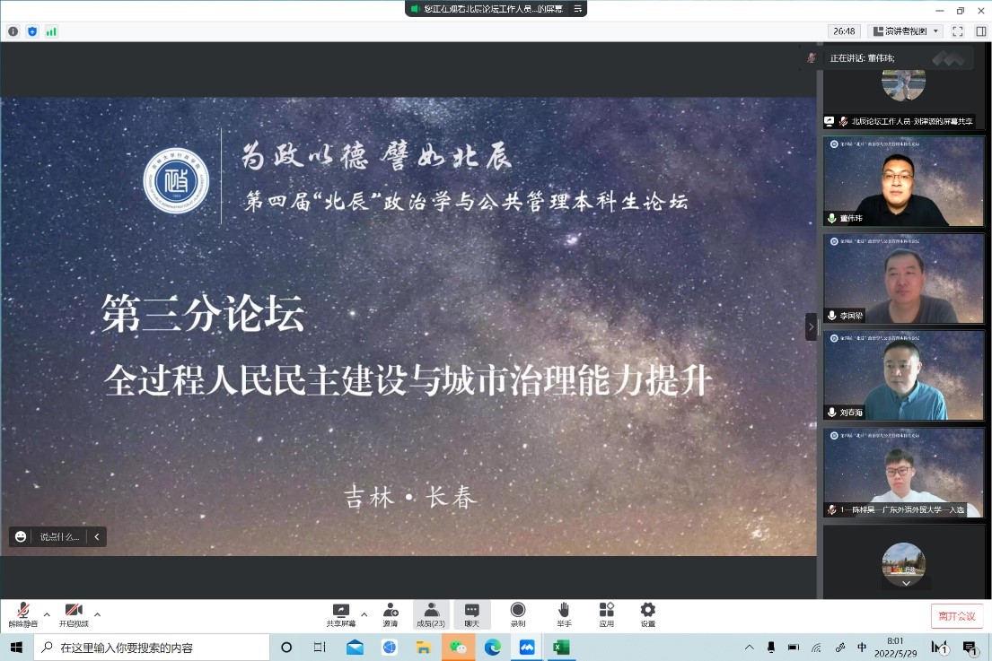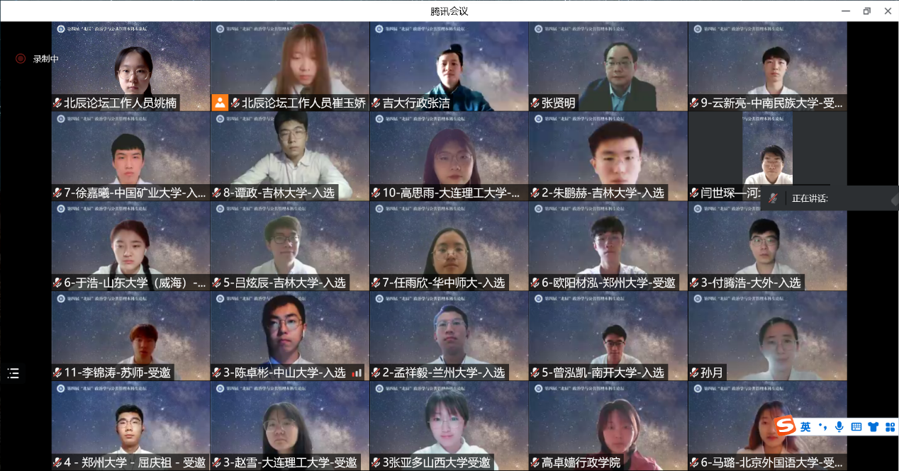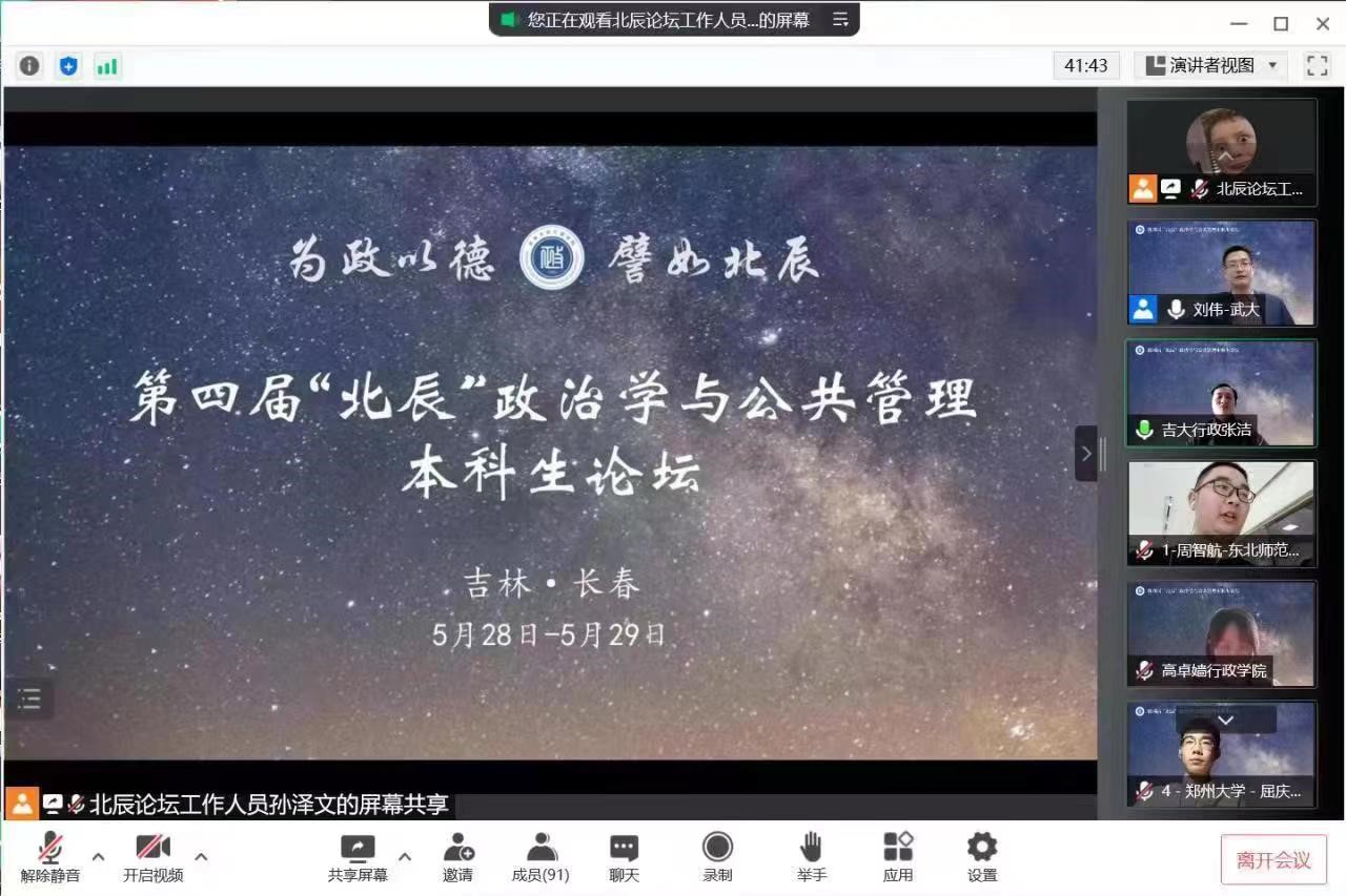 举办第四届“北辰”政治学与公共管理本科生论坛。论坛以视频会议形式在线上进行,共有78所高校的159名同学参加本次论坛。