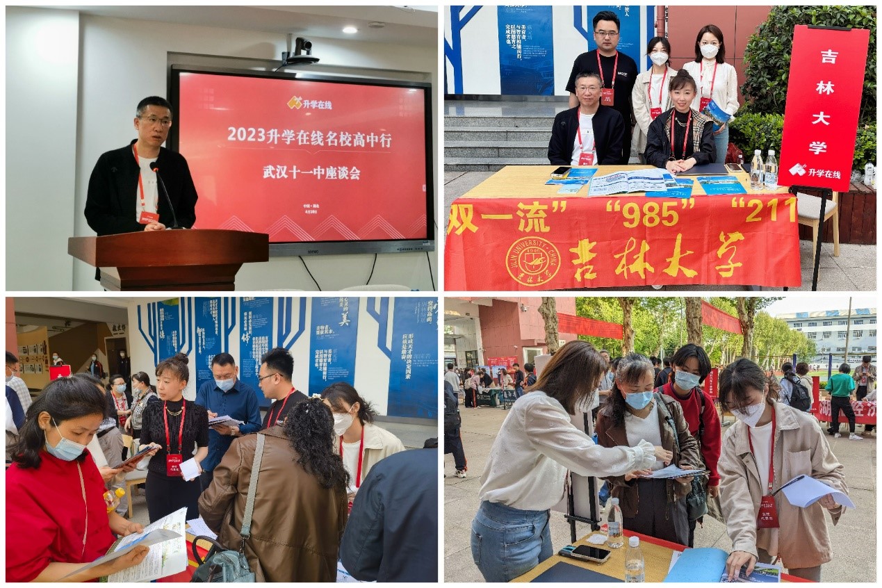 在武汉市第十一中学,刘雪华、刘畅、张力伟、高卓嫱、王斯靓一行5人参加“升学在线名校高中行”武汉场次活动。座谈会环节,刘雪华向武汉市第十一中学陶勇校长、武汉市第三中学张才清副校长、武汉新洲区第一中学任红斌副校长与高校同仁介绍了成人抖音