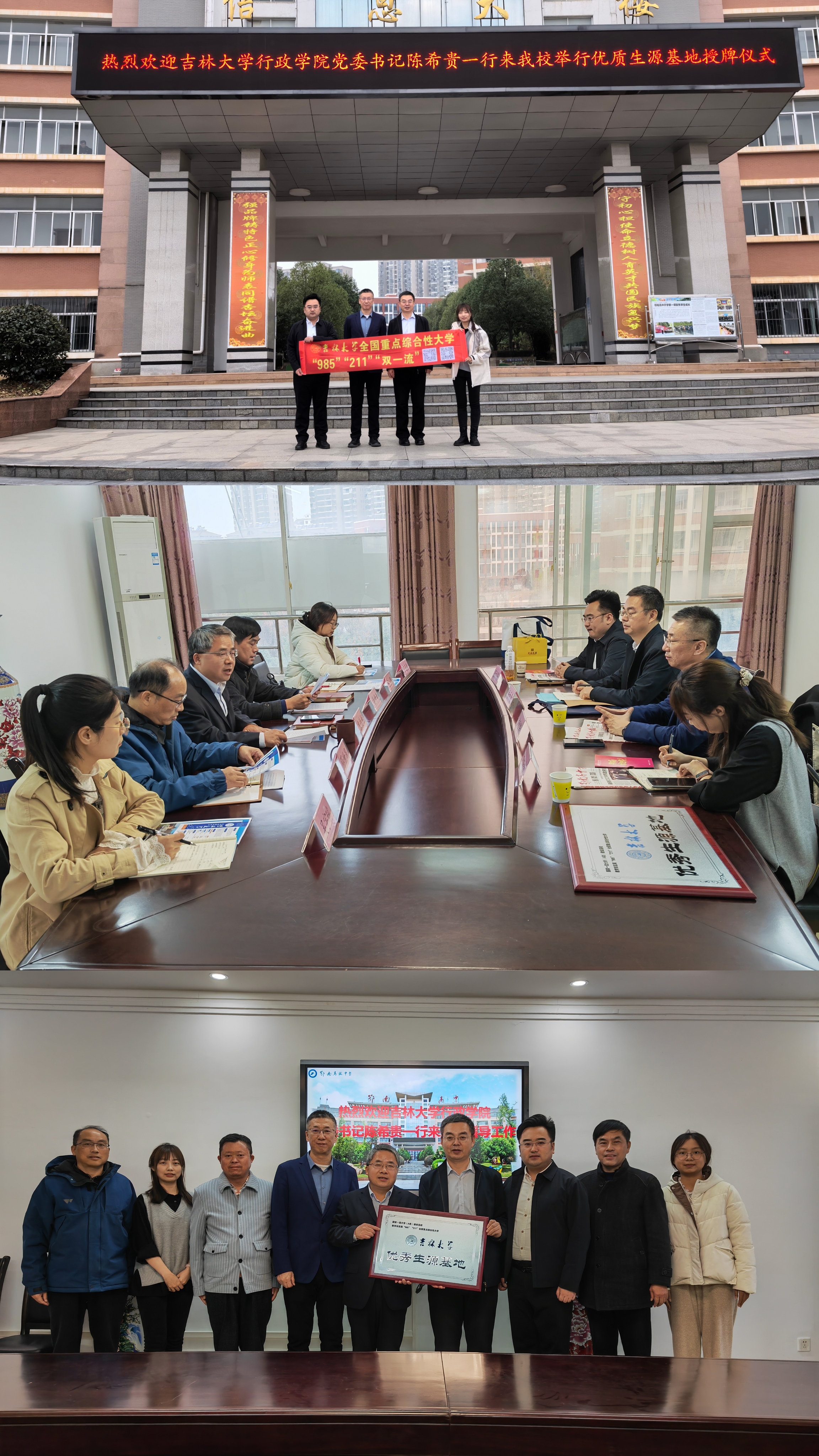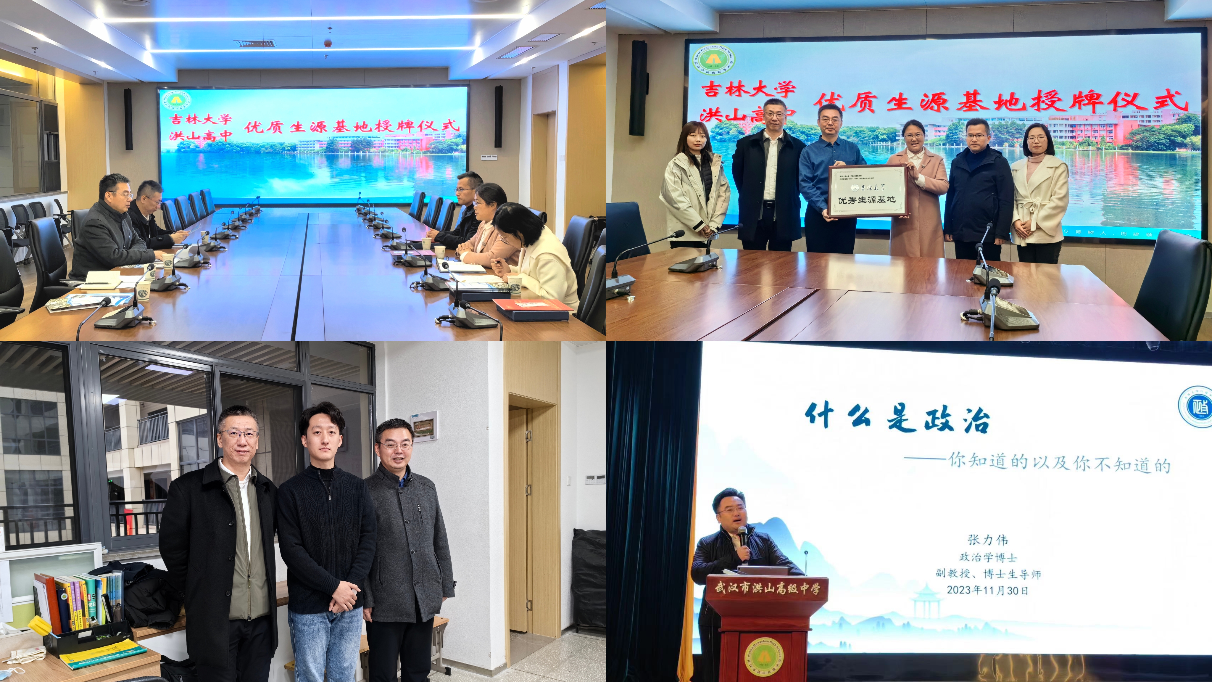 党委书记陈希贵、副院长刘雪华教授、政治学系张力伟副教授、外事秘书王斯靓所组成的工作组一行4人先后赴湖北省鄂南高级中学(以下简称“鄂南高中”)、武汉市洪山区高级中学(以下简称“洪山高中”)开展本科招生宣传活动。