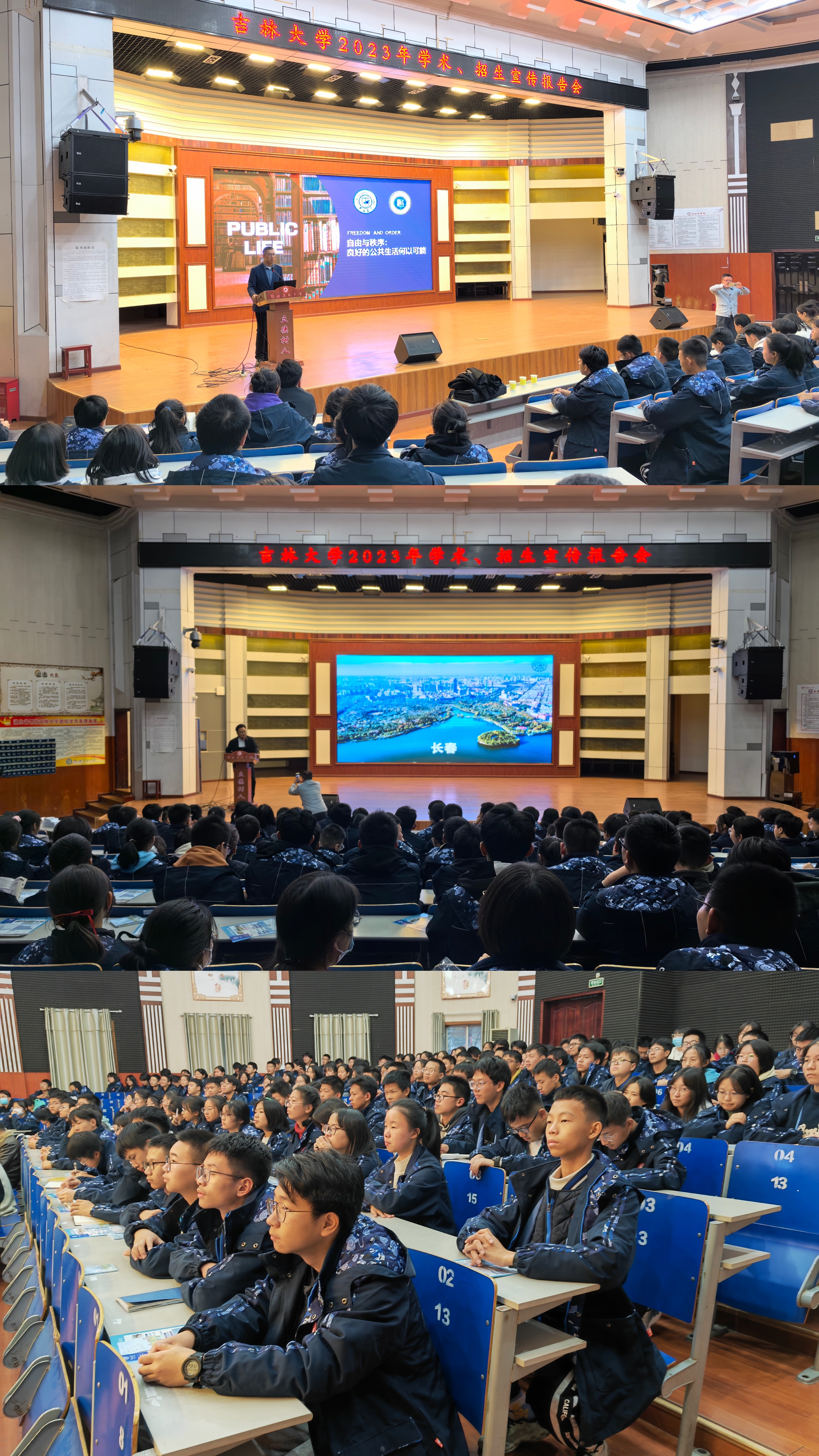 刘雪华教授面向鄂南高中近230名师生作题为《自由与秩序:良好公共生活何以可能》的学术报告。报告由李凯主持。刘雪华教授从同学们的实际生活作切入点,生动形象地向同学们讲解了什么是公共生活、为什么需要公共生活、良好的公共生活是何状态及如何实现良好的公共生活等话题。张力伟副教授向同学们作题为《筑梦启航在成人抖音