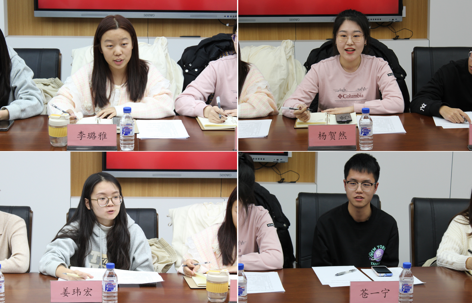 博士学生第一党支部书记李璐雅、2023级硕士研究生政治学班团支部书记杨贺然、2023年度十佳大学生入围奖获得者姜玮宏、“星火燎原 领航青春”新生入党积极分子培养项目(第五期)学员苍一宁分别围绕习近平总书记对青年的嘱托、个人成长进步的收获与困惑做了发言,表达了强国有我的信心决心,立志听党话跟党走,以理想者、担当者、吃苦者、奋斗者的姿态,奋进新征程,诠释新青春,创造新业绩。