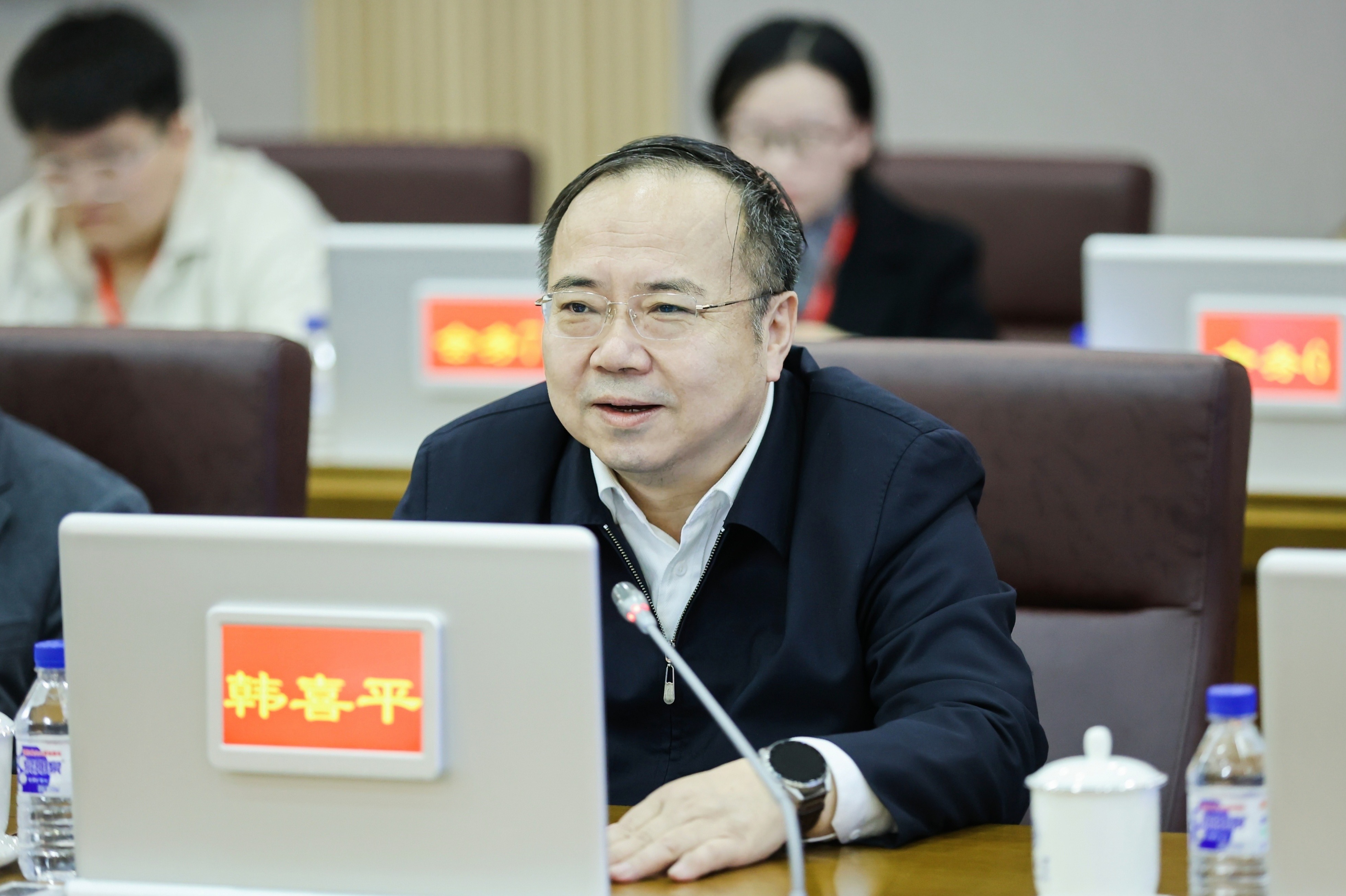 在国家社科基金重大项目团队培育、选题征集和组织申报等工作,并结合习近平总书记对第二次全国党内法规工作会议作出的重要指示,就项目主题谈了几点认识。韩喜平指出,要把高举思想旗帜作为完善党内法规制度体系之“纲”;要把加强党的领导作为完善党内法规制度体系之“本”;要把坚持人民至上作为完善党内法规制度体系之“基”。他希望首席专家王立峰教授和研究团队认真落实国家社科基金重大项目研究的相关要求,严格按照预期研究计划开展相关研究工作。