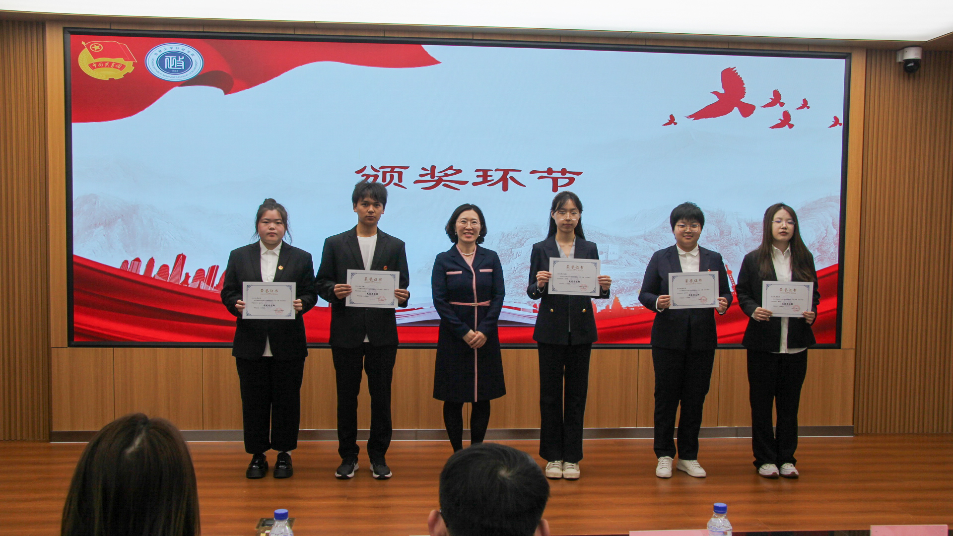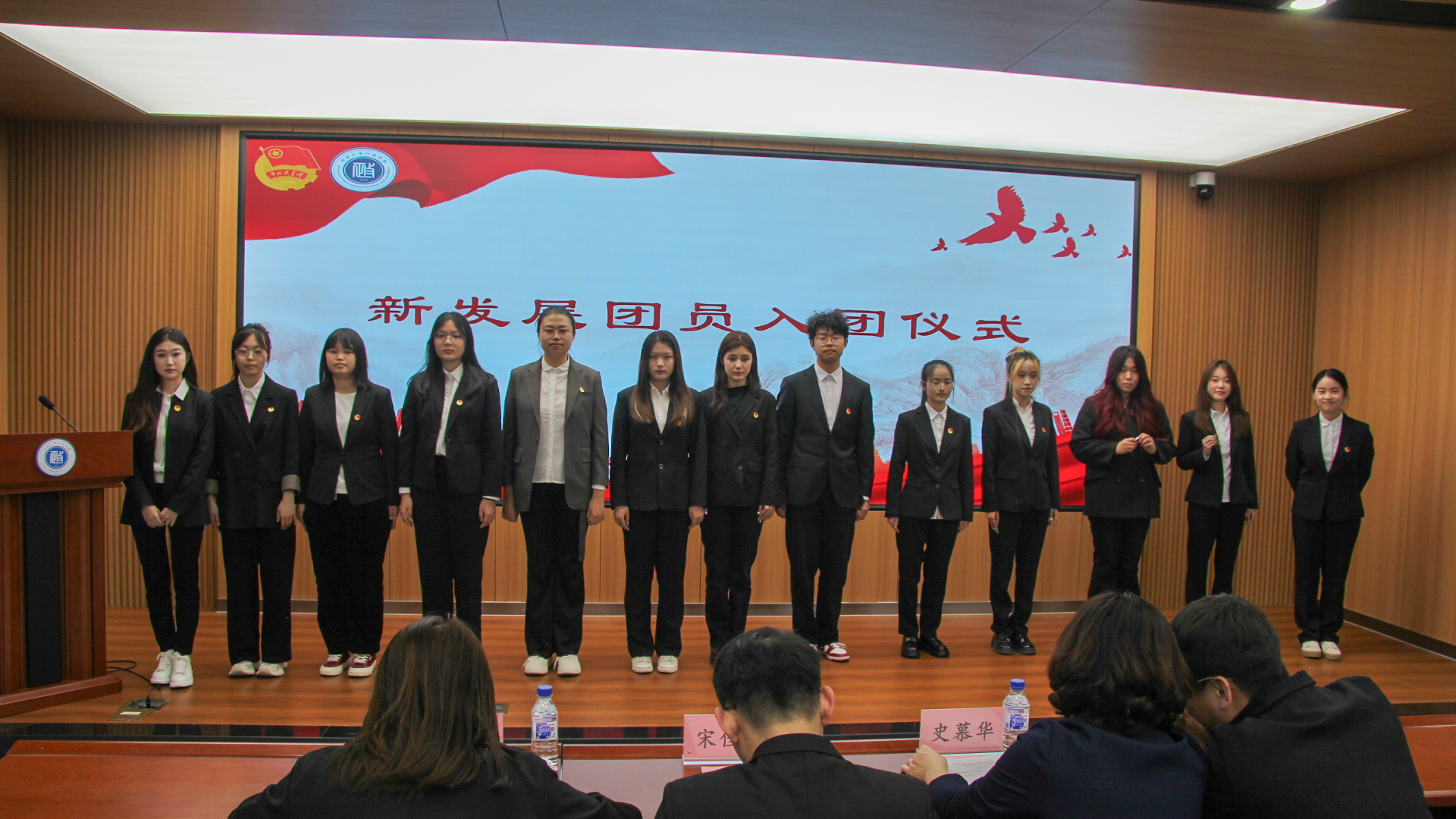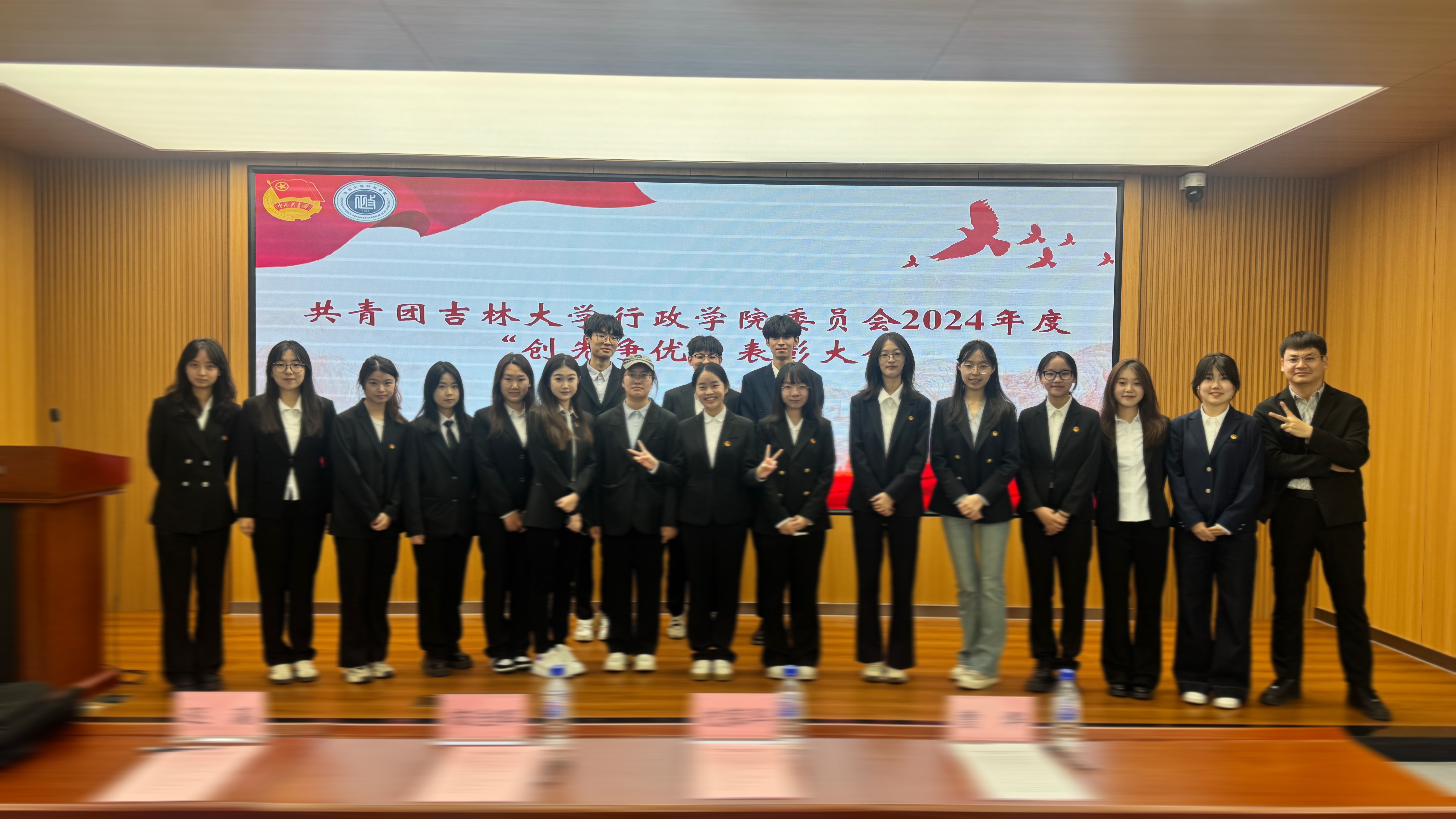 委员会2024年度“创先争优”表彰名单,共表彰6个先进团支部、58名优秀共青团员、27名优秀共青团干部与5名优秀学生记者。各与会领导、老师为获奖同学颁发证书并合影留念。会议举行新团员入团仪式,院团委副书记陈艺尹(2022级本科生)为新团员授予团徽,带领新入团团员进行宣誓,与会其他团员重温入团誓词。