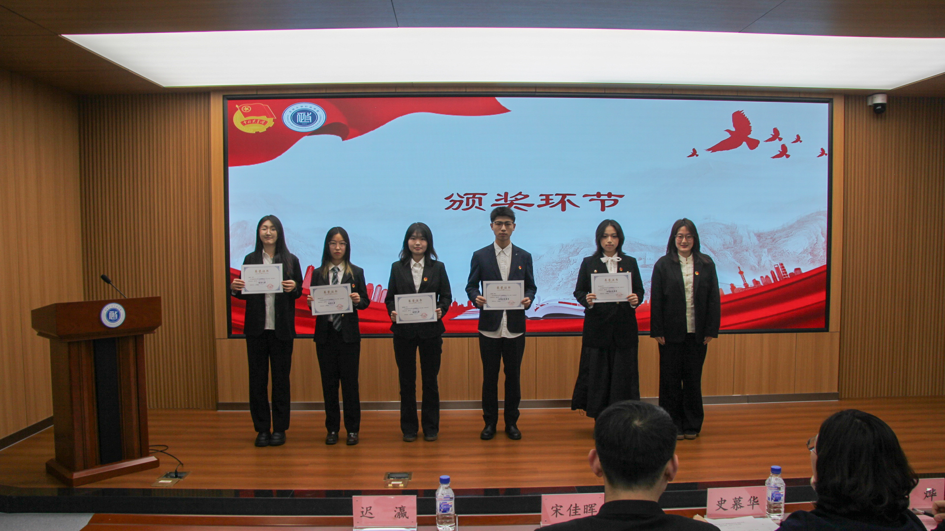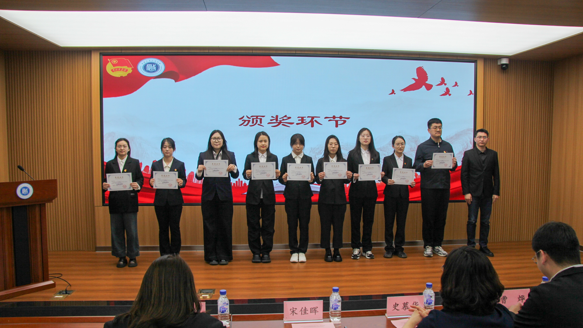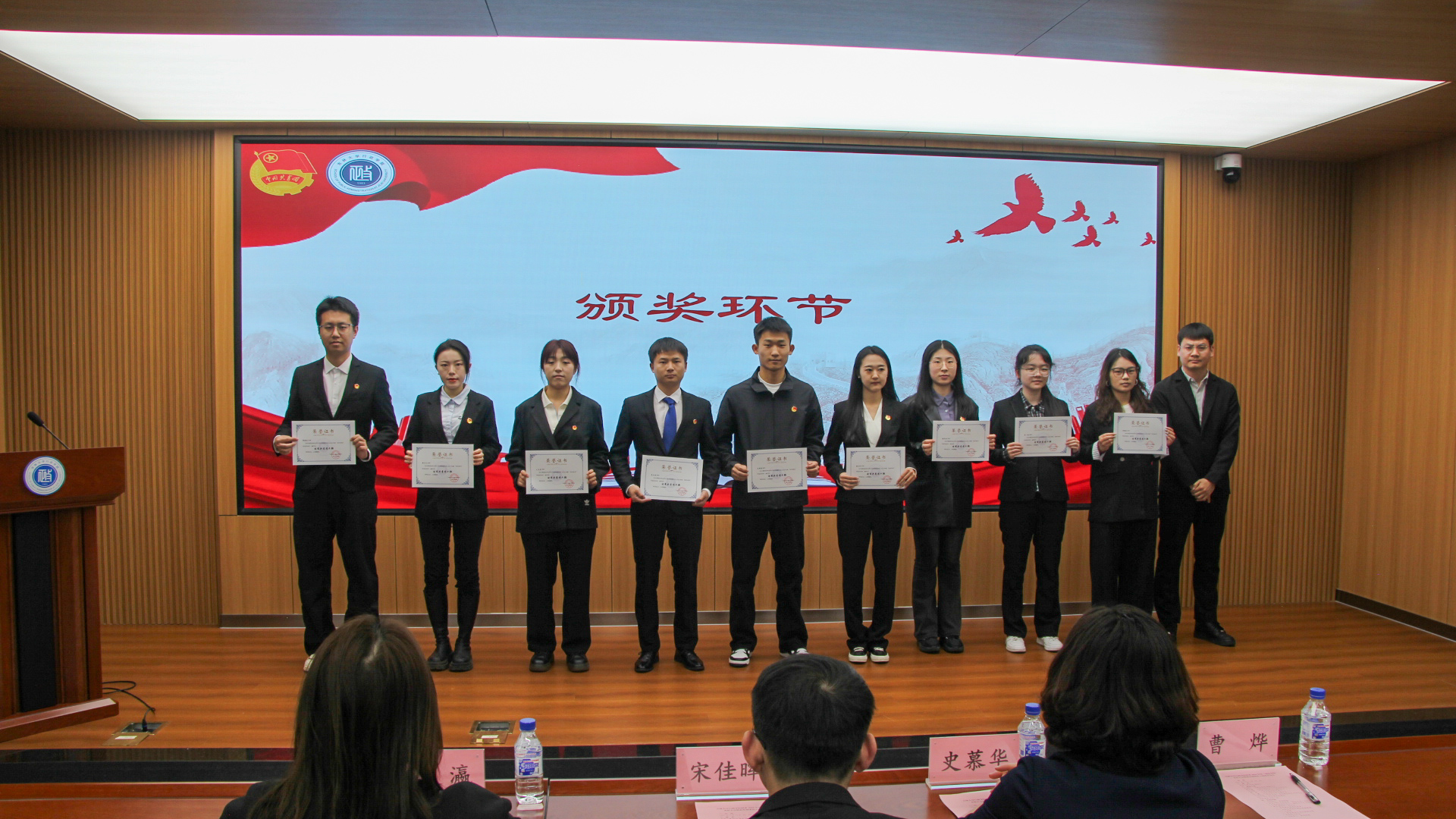 委员会2024年度“创先争优”表彰名单,共表彰6个先进团支部、58名优秀共青团员、27名优秀共青团干部与5名优秀学生记者。各与会领导、老师为获奖同学颁发证书并合影留念。会议举行新团员入团仪式,院团委副书记陈艺尹(2022级本科生)为新团员授予团徽,带领新入团团员进行宣誓,与会其他团员重温入团誓词。