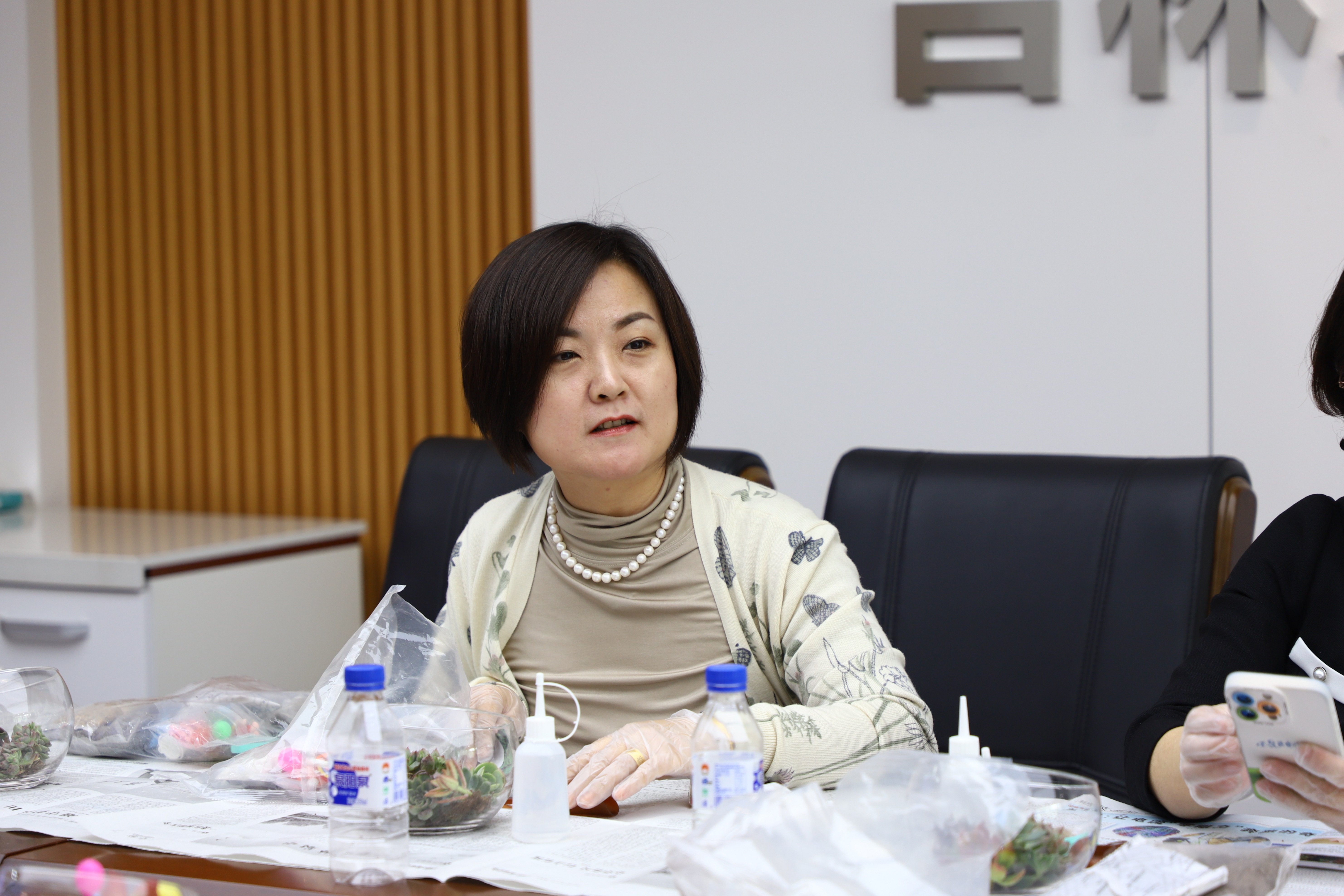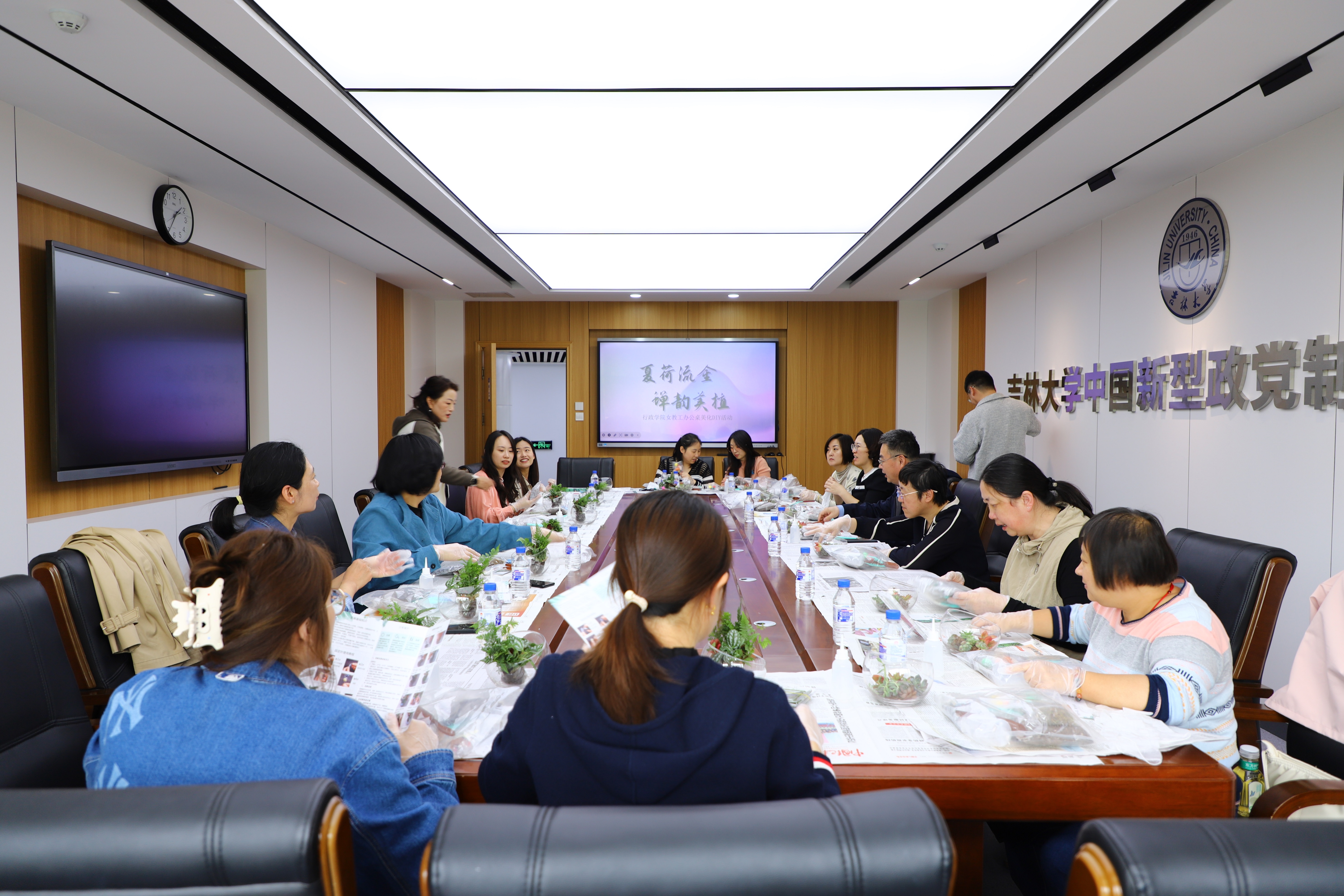 切实提升成人抖音 女性教职工的幸福感和归属感,缓解长期伏案工作的压力,优化日常办公环境,521日小满节气之际,成人抖音 妇委会举办“夏荷流金·蝉韵美植”办公桌美化DIY活动,成人抖音 党委书记陈希贵、副书记史慕华、副院长刘畅、行政副院长季洪涛、妇委会主任薛洁、妇委会副主任王欣及报名活动的成人抖音 女性教职工参与活动。