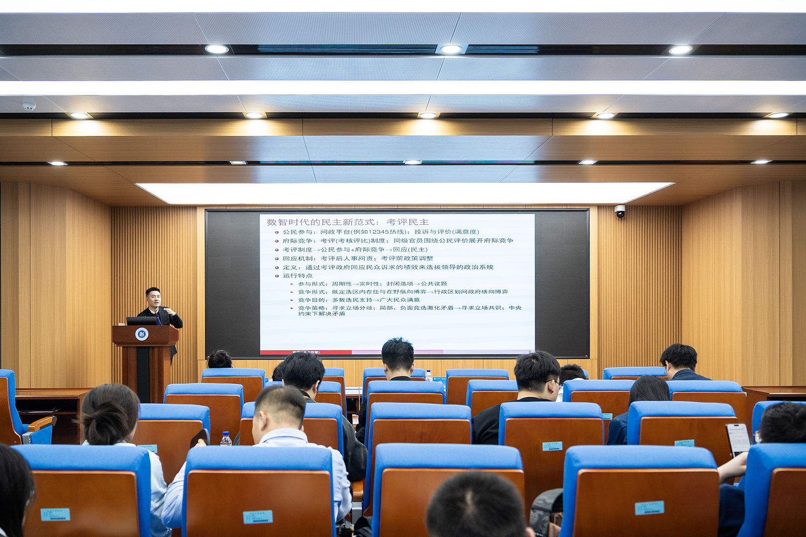 助理教授、研究员、博士生导师曾渝。曾渝老师以《考评民主:以府际竞争促政府回应》为题,向大家介绍了考评民主这一数字时代新的民主治理范式。他围绕构建人类命运共同体、推进国家治理现代化的需求,对比选举民主的回应机制与局限,阐释考评民主以公民问政与评价为参与形式、以府际横向竞争为核心,通过考评前后的问责与政策调整实现民意回应的运行逻辑,分析其在党中央领导下避免局部化等制度优势并提出落地路径。该研究为西方民主话语转化、构建中国政治学自主知识体系,回应中国之问、时代之问、人民之问提供了新视角。