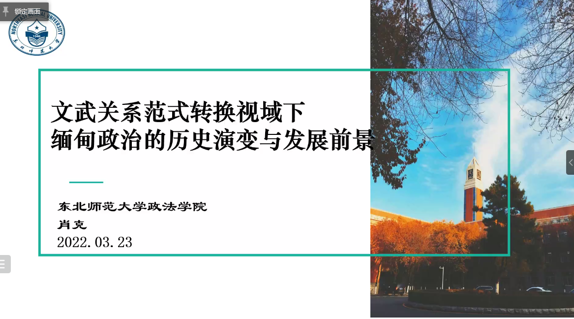 教授、博士生导师肖克老师担任主讲嘉宾,进行题为“文武关系范式转换视域下缅甸政治的历史演变与发展前景”的学术讲演。天津师范大学政治与成人抖音