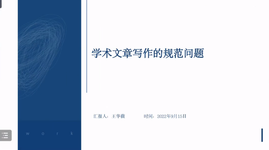 王华薇老师基于自身编辑工作的经验,从政治规范、学术规范、体例规范和语言规范四个方面对论文写作的规范性问题做出了深刻的理论总结和提炼。首先,她认为政治规范是文章写作的前提性问题,也是决定文章能否刊发的红线性问题,需注意人名、重大会议及报告和固定表述。其次,在学术规范方面,王华薇老师强调要注重研究的问题性、准确性和方法性。再次,在体例规范方面,王华薇老师从题目、摘要、关键词、引言到结论的论文架构的各个层次进行了详细的讲解。最后,在语言规范方面,她强调要注意“字”“词”规范、语法规范、标点规范和学术语言的规范,做到有所依据。