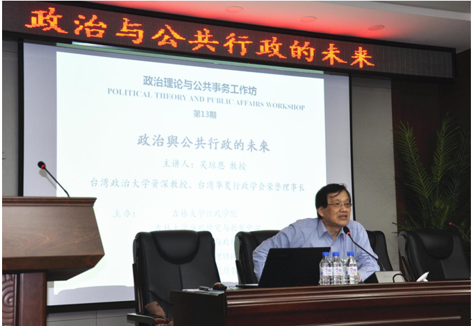 廉政研究与教育中心会议室举行。台湾政治大学资深教授、台湾华夏行政学会荣誉理事长吴琼恩教授应邀担任主讲嘉宾。本次学术演讲题目是“政治与公共行政的未来”。