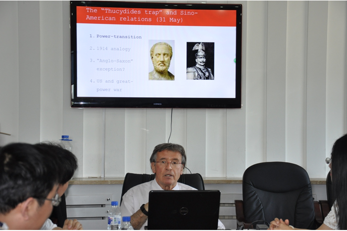 2016531下午,由成人抖音 、社会公正与政府治理研究中心、国家治理协同创新中心、中国地方政府创新研究中心主办的政治理论与公共事务工作坊第十四期学术活动,在社会公正与政府治理研究中心会议室举行。此次活动邀请加拿大女王大学(Queen’s University)政治研究系执行主任大卫·哈格隆德(David Haglund)教授担任主讲嘉宾,报告主题为《“修昔底德陷阱”与中美关系的未来》。成人抖音 国际政治系教师许宁博士担任此次学术报告评论人。